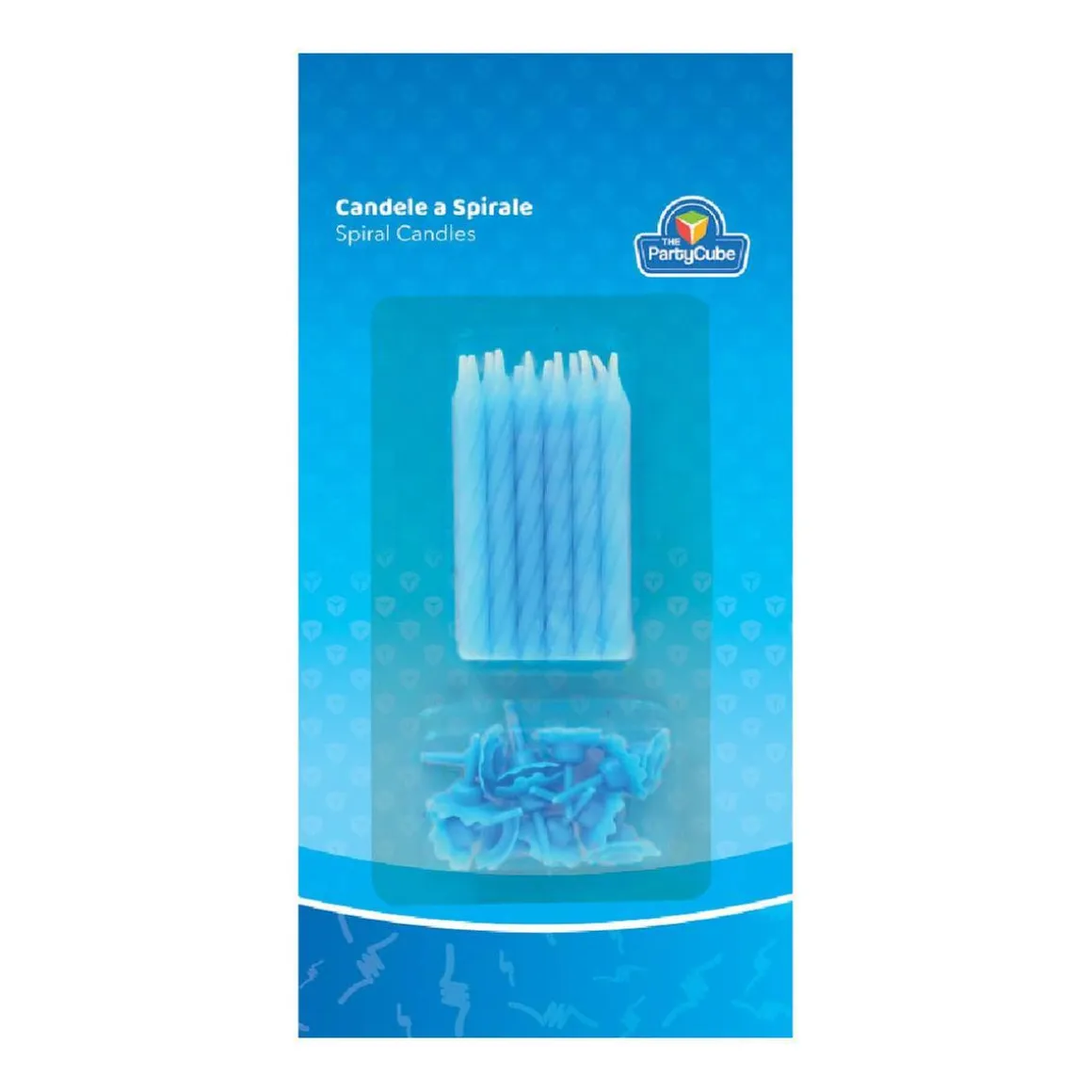 Pack 12 velas azules en espiral, un pack de velas de cumpleaños.