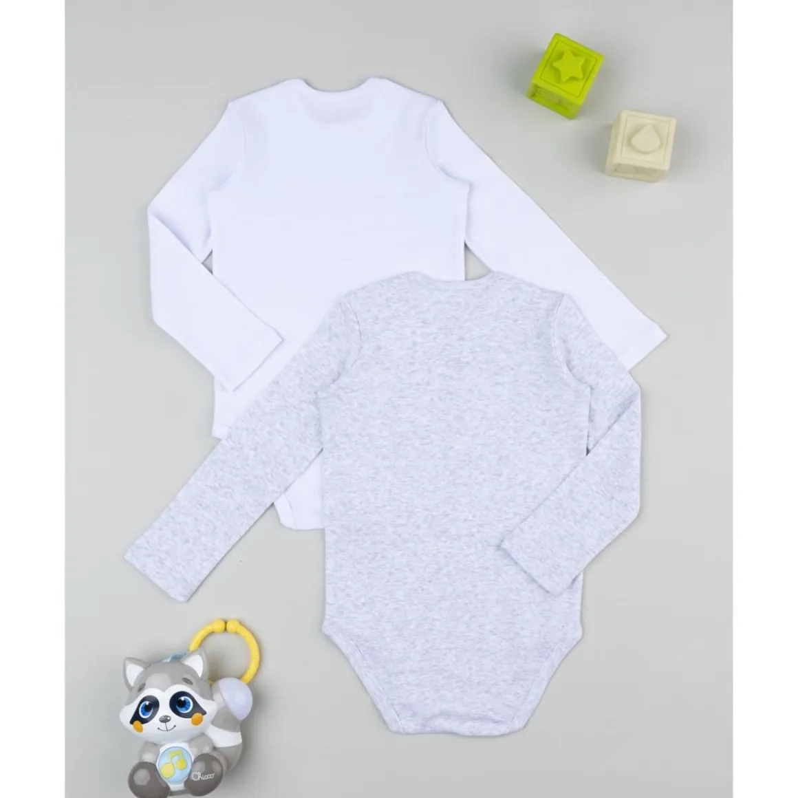 Pack 2 bodies de manga larga niño gris y blanco con dinosaurios