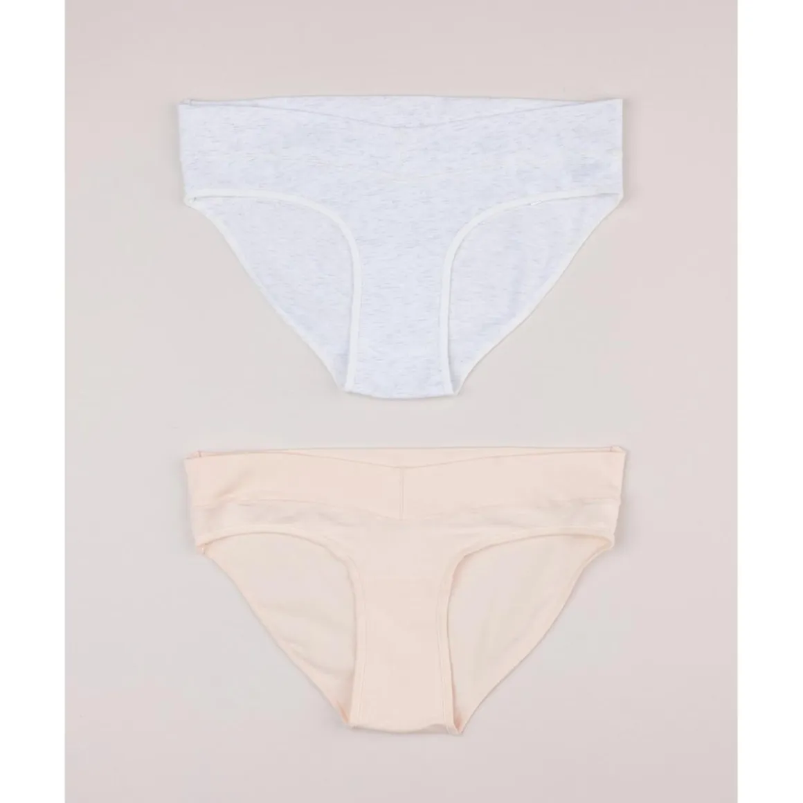 Pack básico 2 braguitas de cintura baja premamá. Las prendas vienen en blanco total y beige total y tienen un elástico en la cintura que garantiza cero molestias. Las braguitas son premamá, ideales para todo tipo de vestido. Accesorios no a la venta. La confección contiene solo la prenda de vestir.