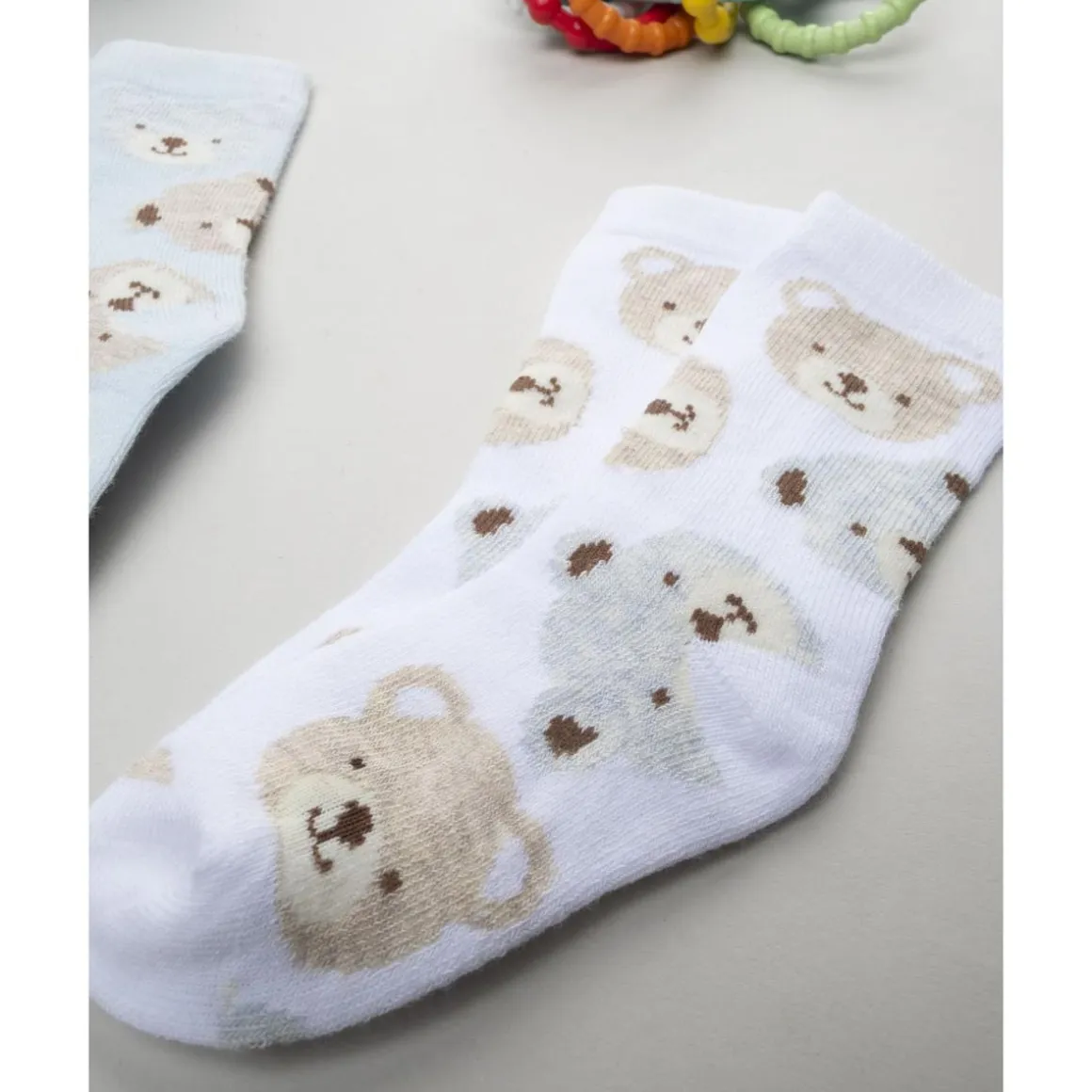 Pack 2 calcetines para niño blanco/gris con ositos – Detalles bordados