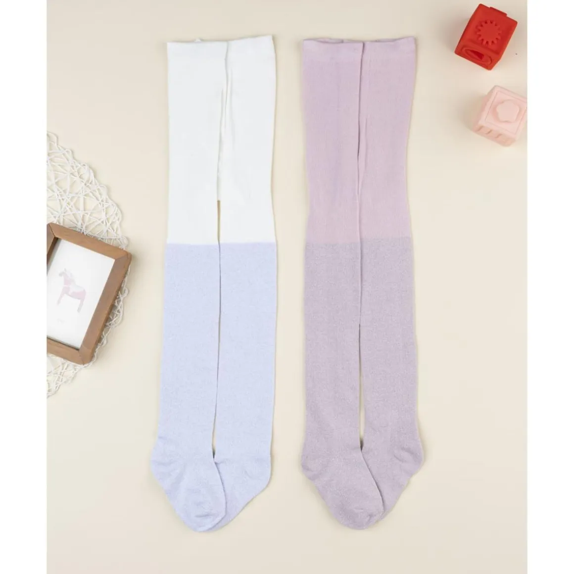 - Pack de 2 pares: rosa y blanco con hilos brillantes.