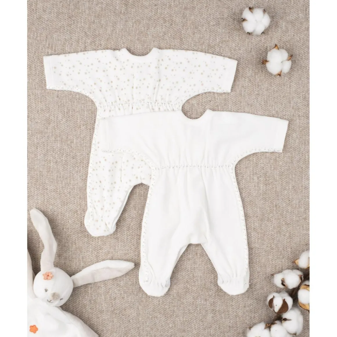 Este pack de 2 peleles extrasmall unisex en terciopelo de algodón es perfecto para los recién nacidos. Suaves y acogedores, garantizan el máximo confort para la piel delicada del bebé.