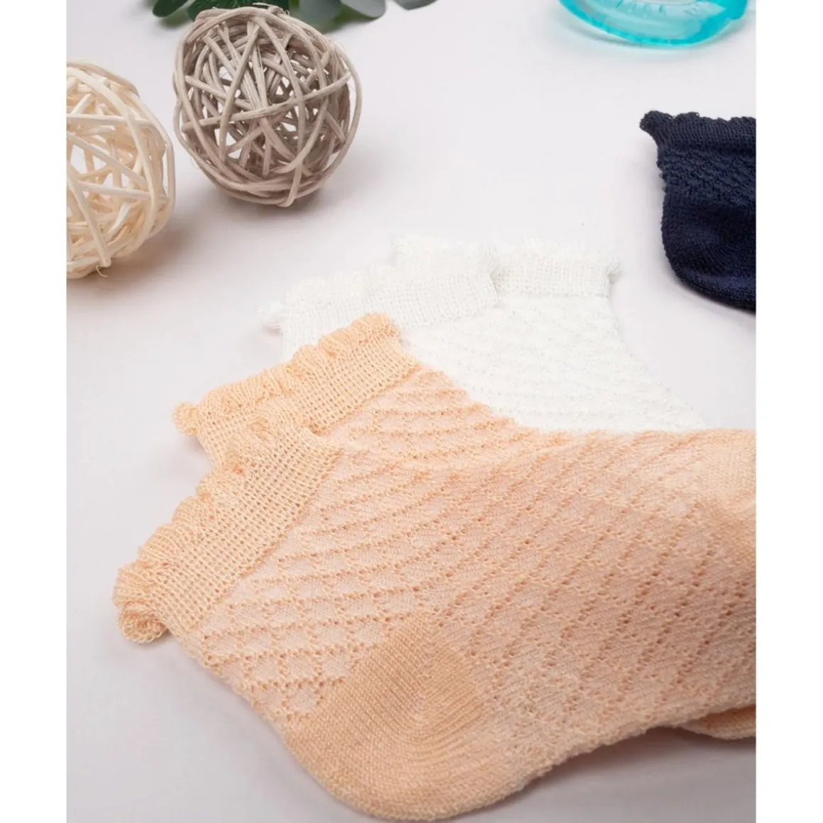 Pack 3 Calcetines Bebé Niña Blanco/Naranja/Negro