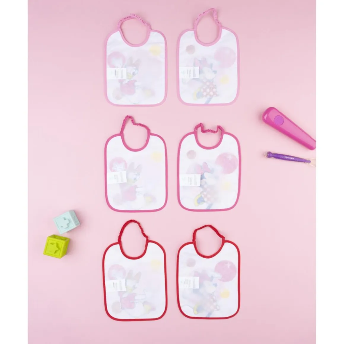 Este pack reúne 6 baberos grandes con estampados de Disney Minnie, pensados para acompañar cada comida con un toque alegre. El diseño con cuello elástico facilita poner y quitar con una sola mano, evitando cierres que puedan molestar en la nuca. Con medidas generosas (36×28 cm), ofrecen una cobertura amplia del pecho y los hombros para proteger la ropa de manchas, papillas y salpicaduras.