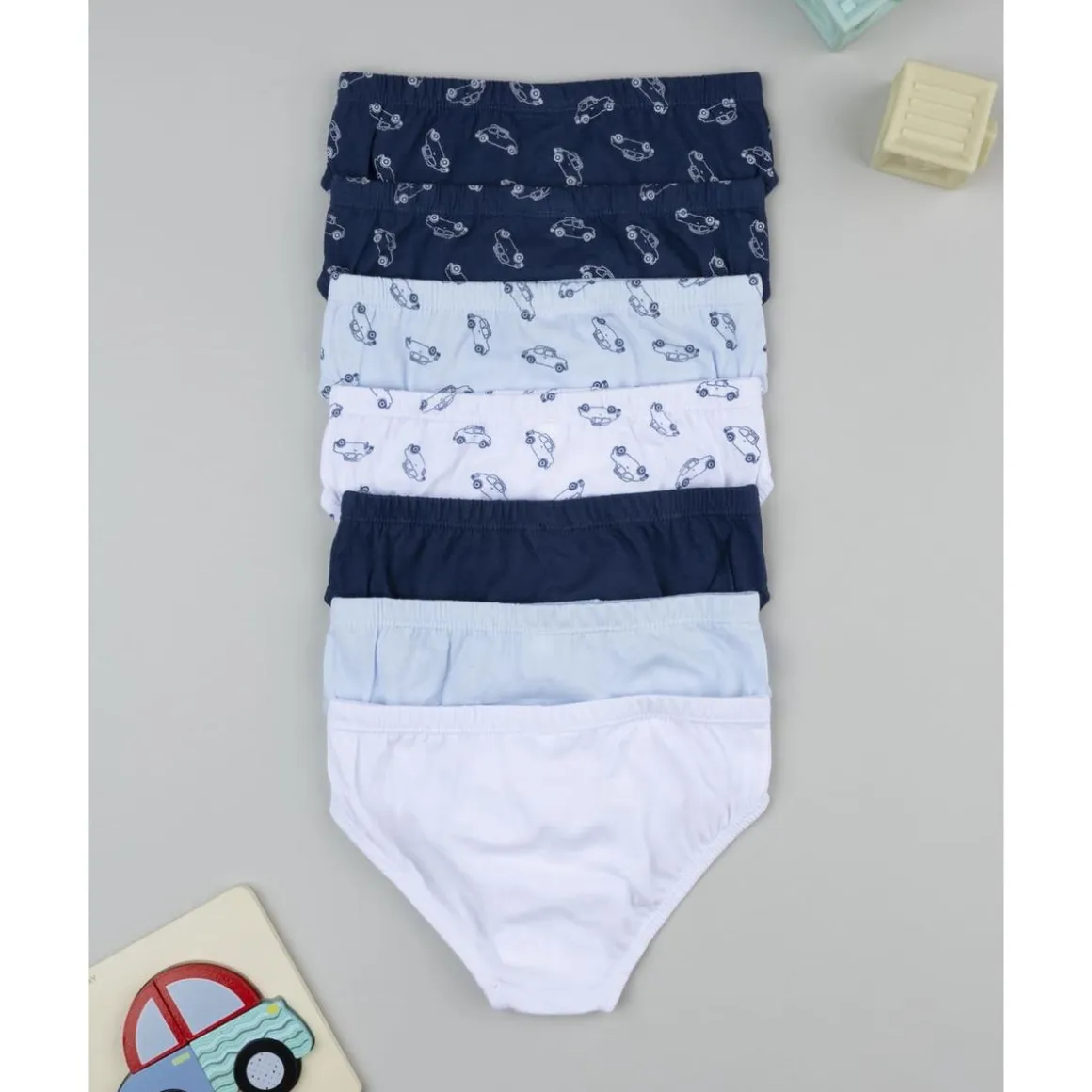 Este pack incluye 7 calzoncillos en diferentes tonos de azul, blanco y celeste, con estampados de coches. Fabricados en algodón Oeko-Tex, ofrecen suavidad, seguridad y transpirabilidad, cuidando la piel sensible de los niños.