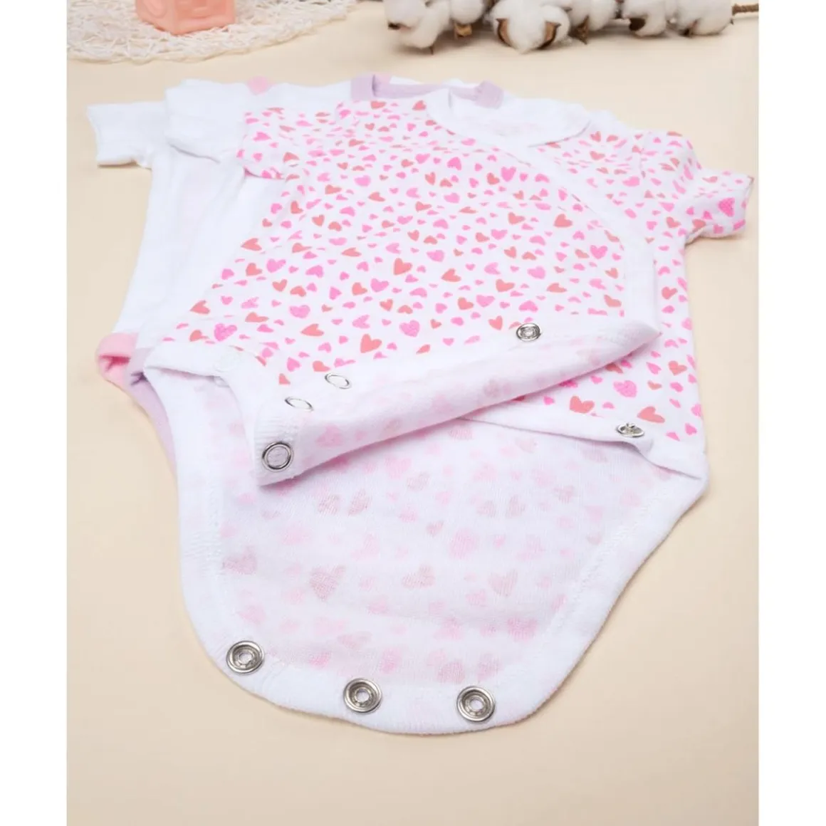 ¿Por qué elegirlos? Estos bodys son perfectos para vestir día tras día: su tejido de algodón es suave y transpirable, los colores y estampados aportan dulzura, y el cierre cruzado los hace muy prácticos para los cambios frecuentes. Un imprescindible para la etapa de recién nacida.