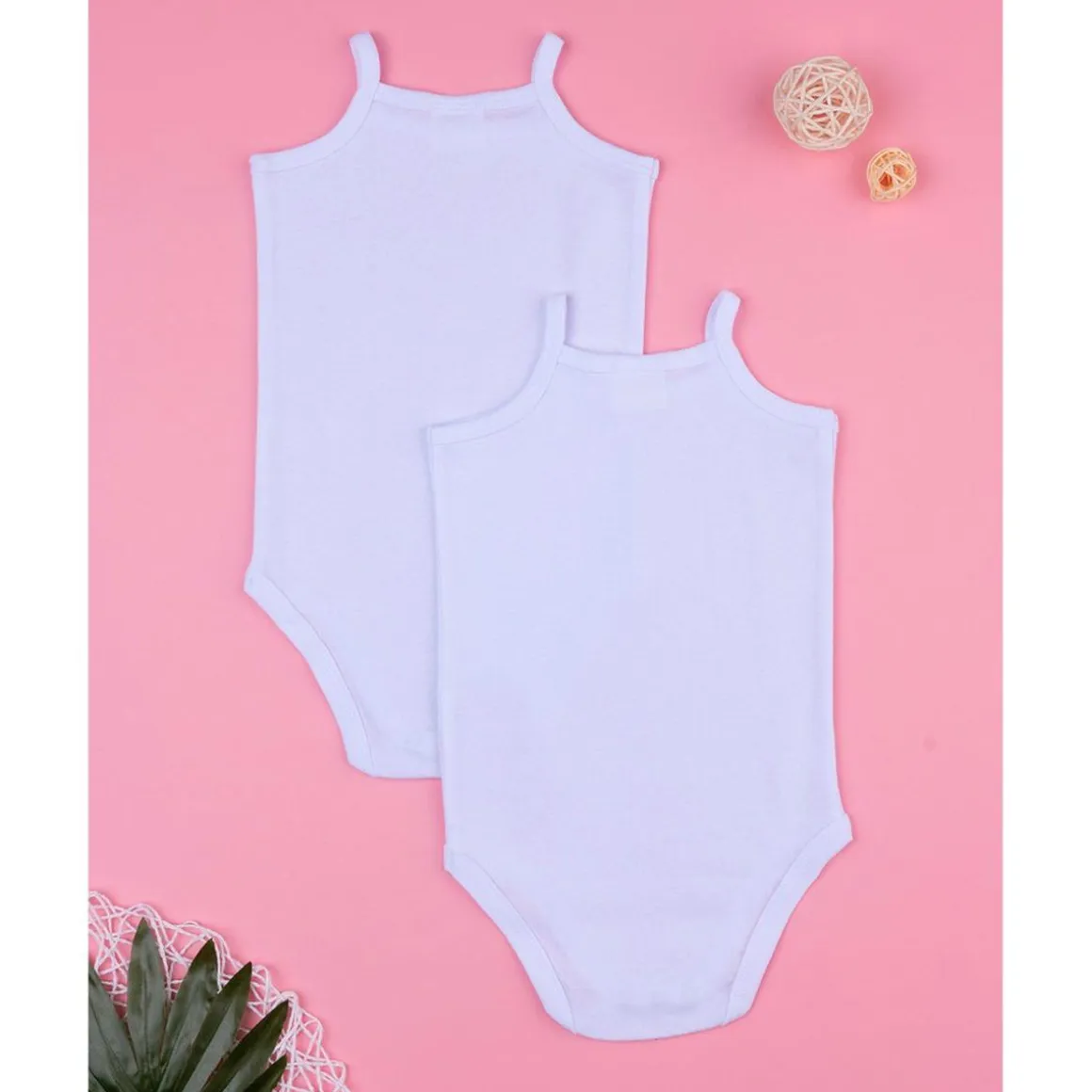 Paquete de dos bodies íntimos para niña. Los bodies de tirantes se desarrollan en color blanco liso. Tirantes estrechos. Cierre con automáticos en la entrepierna. Accesorios no a la venta. El paquete contiene solo la prenda de ropa.