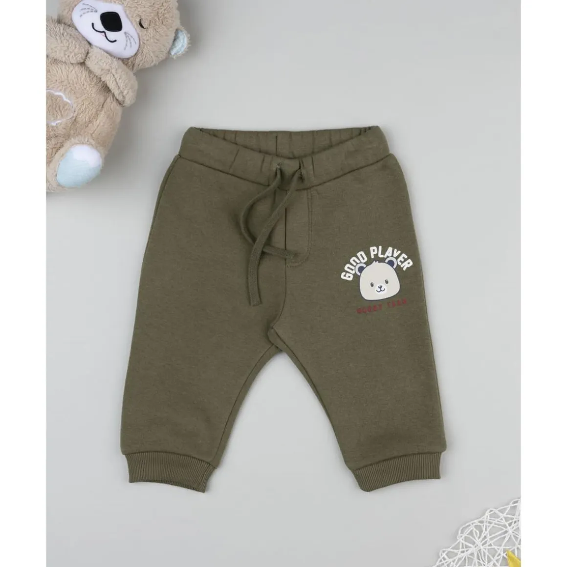 Casual y cómodo, este pantalón felpado para niño se presenta en color verde militar con un pequeño estampado coordinado que aporta un toque divertido. Su diseño incluye cintura ajustable mediante cordón, ofreciendo libertad de movimiento y confort durante todo el día. Ideal para combinar con camisetas y sudaderas, este pantalón es perfecto para ocasiones casuales y para que el niño disfrute jugando o en el colegio con total comodidad.