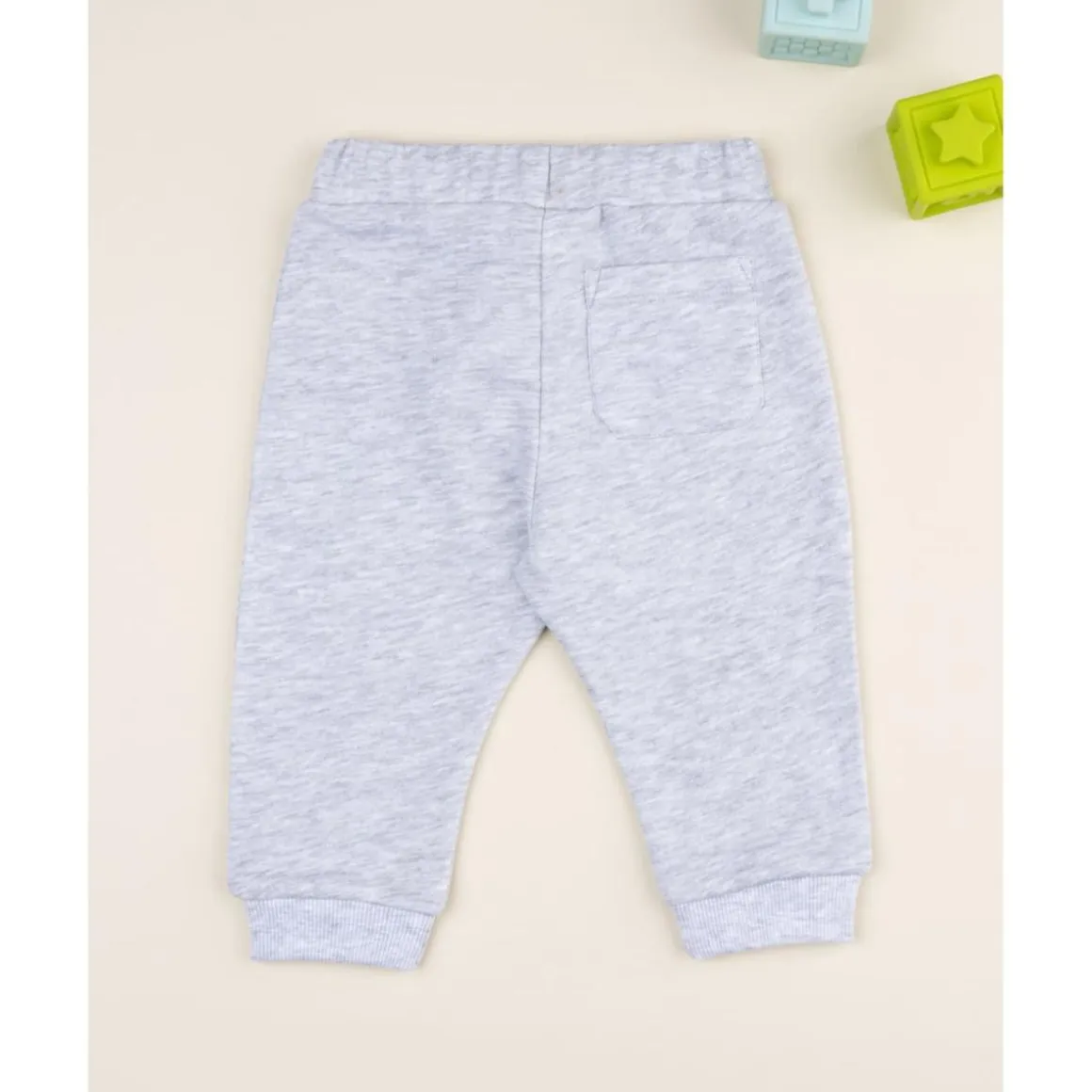Pantalón básico de french terry para niño. Prenda en gris claro. Ajuste suave y regulable gracias al cordón en la cintura. Apto para ocasiones casuales y fácil de combinar. Accesorios no incluidos. La confección contiene solo la prenda de vestir.