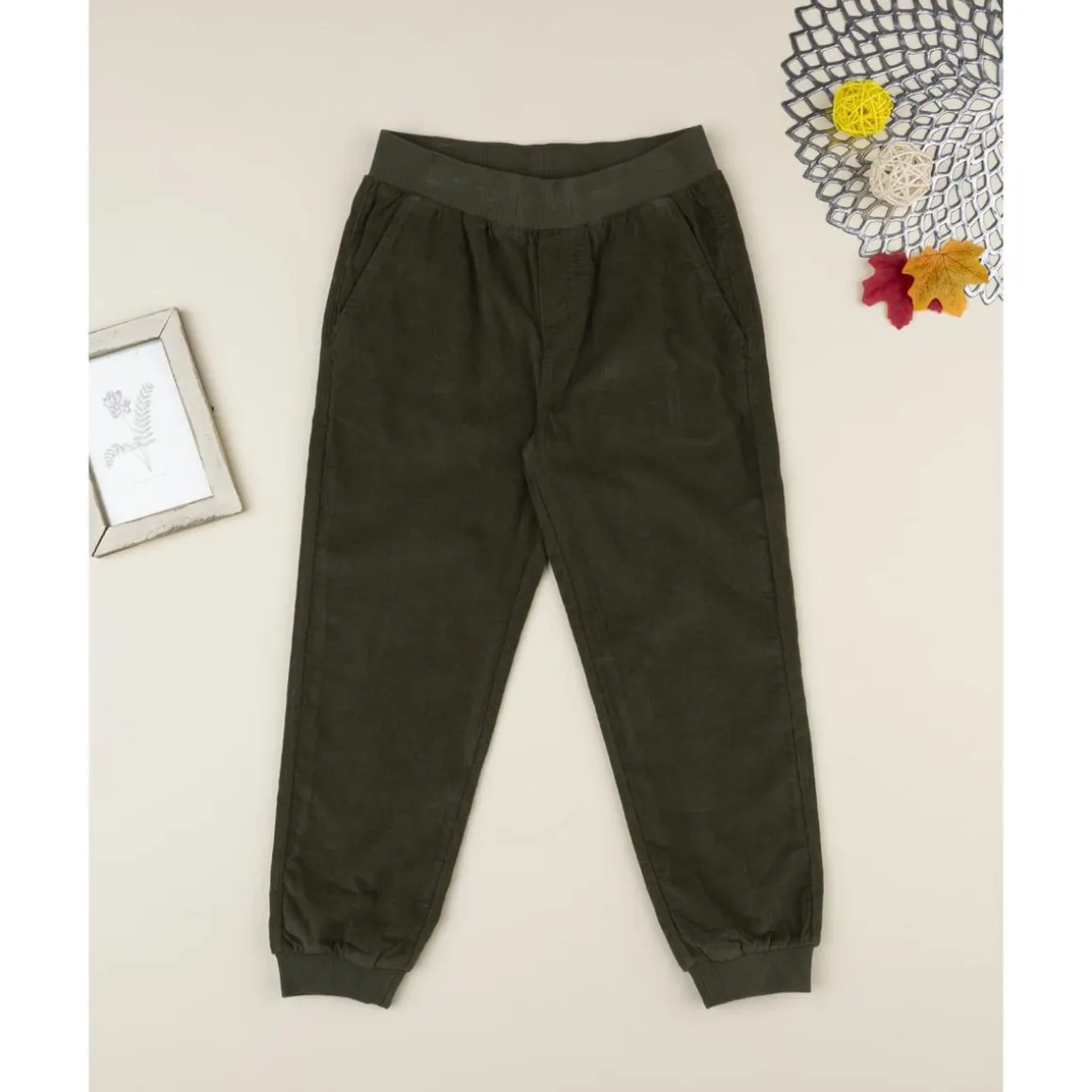 Este pantalón de niño confeccionado en pana verde oscuro es una prenda básica y versátil para el día a día. Presenta un diseño con bolsillos diagonales que aportan practicidad, y cintura elástica ajustable que garantiza comodidad y libertad de movimiento. Su tejido de algodón natural resulta suave y resistente, ideal para acompañar a los más pequeños en sus juegos y actividades.