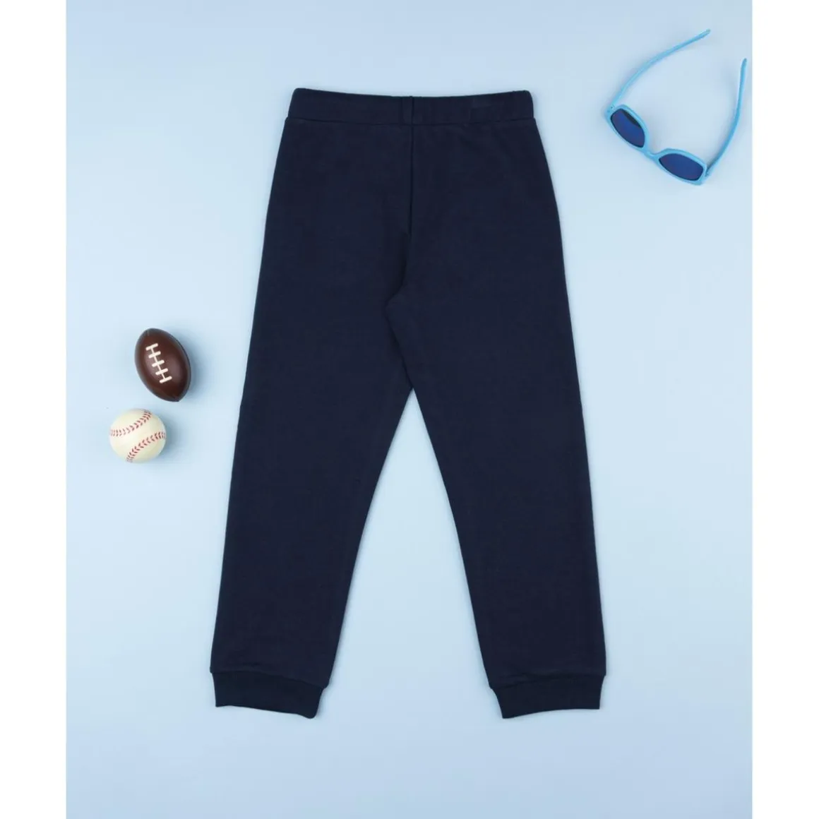 Estos pantalones para niño en color azul noche están confeccionados en terciopelo francés y tienen una cintura elástica ajustable con cordón para un ajuste cómodo. Los pantalones son perfectos para ocasiones casuales o deportivas, y su diseño sencillo y práctico los hace fáciles de combinar.