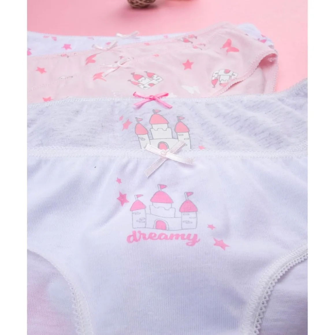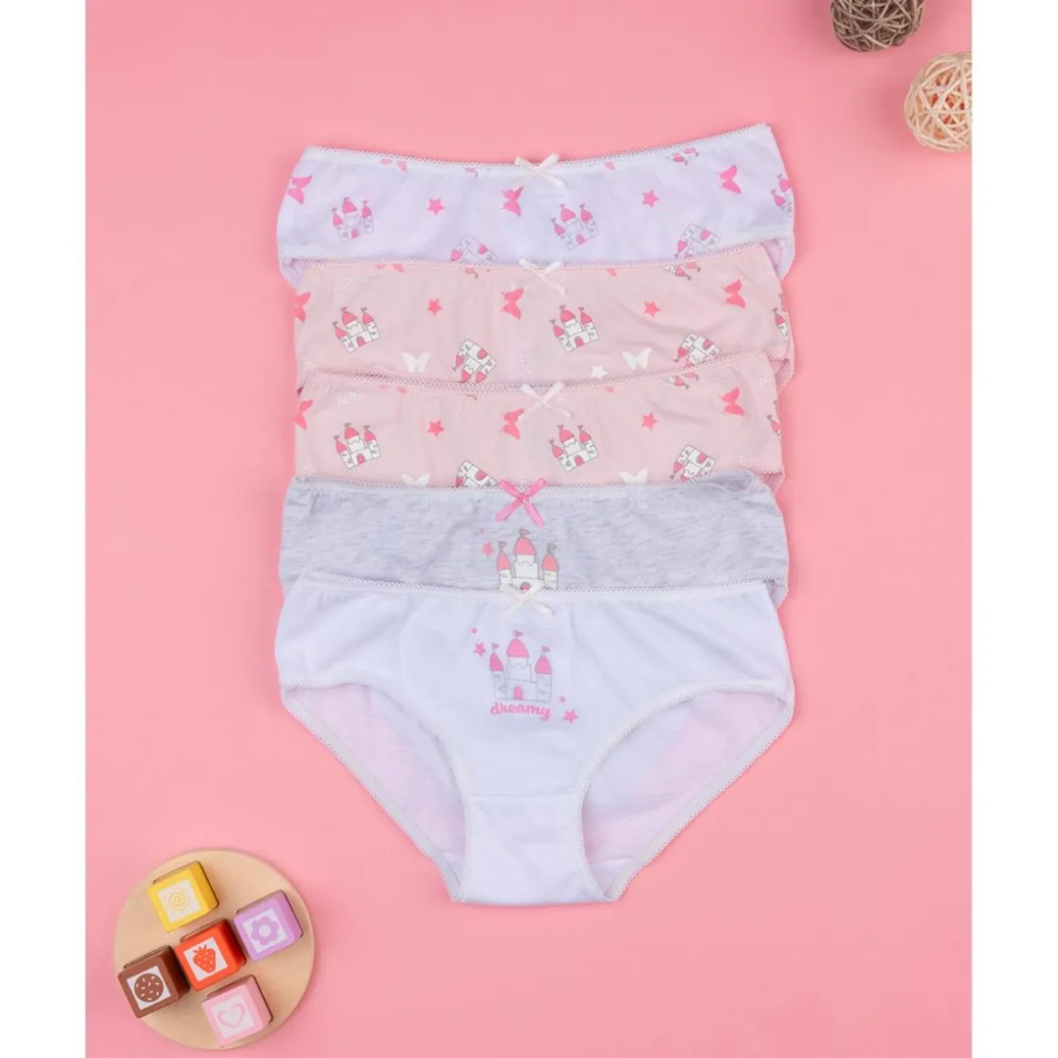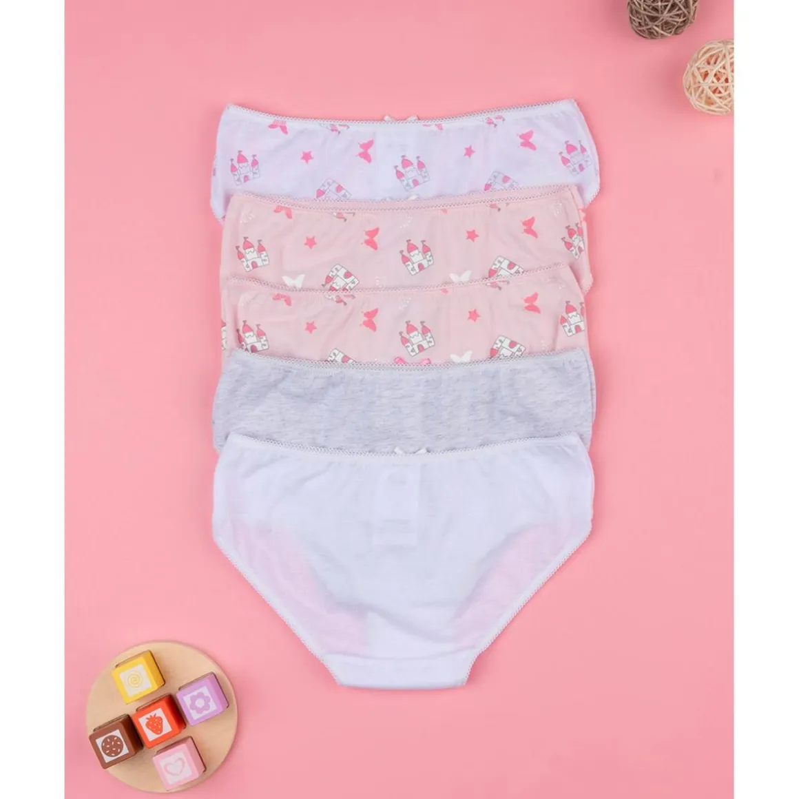 Suave paquete de 5 bragas de camiseta para niña. Las prendas se desarrollan sobre base blanca, rosa y gris con dibujitos a juego. El ajuste es suave y ajustable gracias a la cintura elástica que garantiza cero molestias. Accesorios no a la venta. El paquete contiene solo la prenda de ropa.