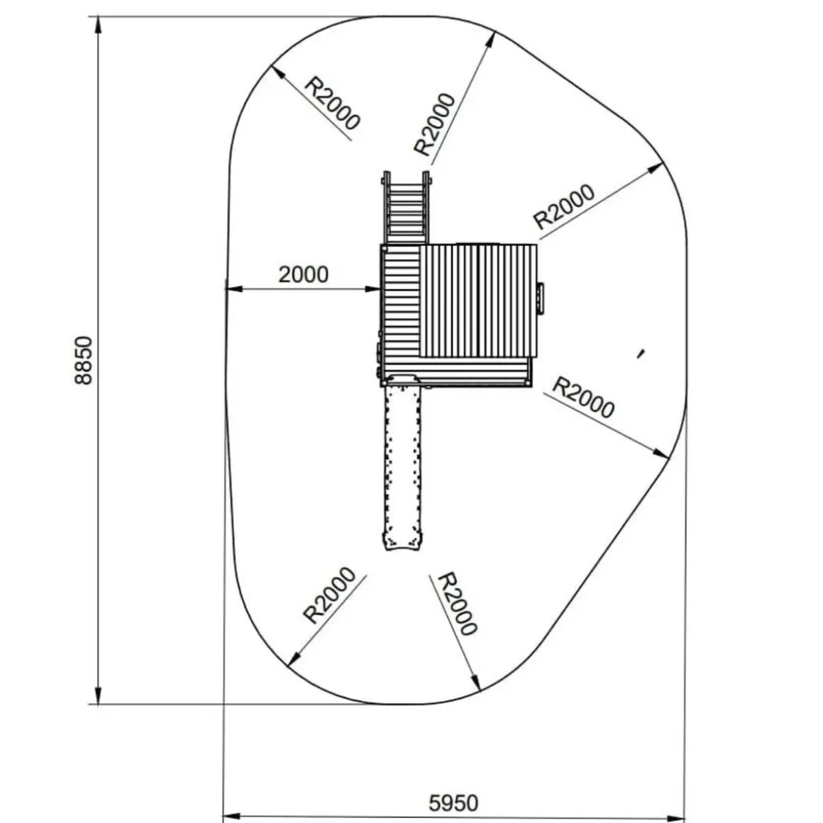 Seguridad en primer lugar. Viene con anclajes de acero galvanizado en caliente incluidos, garantizando que tus pequeños se diviertan de manera segura. El anclaje se hunde en dados de hormigón, como se indica en el dibujo. Perfecto para jardines de arena o césped.