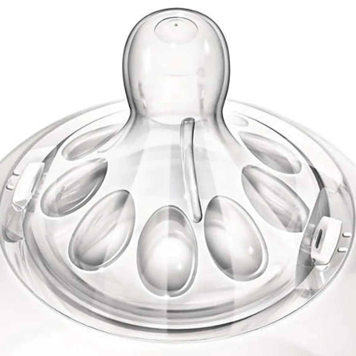 La doble válvula de la tetina reduce los cólicos mediante la ventilación del aire hacia el interior del biberón y no hacia la tripita del bebé.