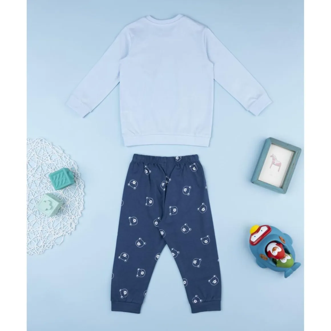Pijama dos piezas niño azul noche ositos