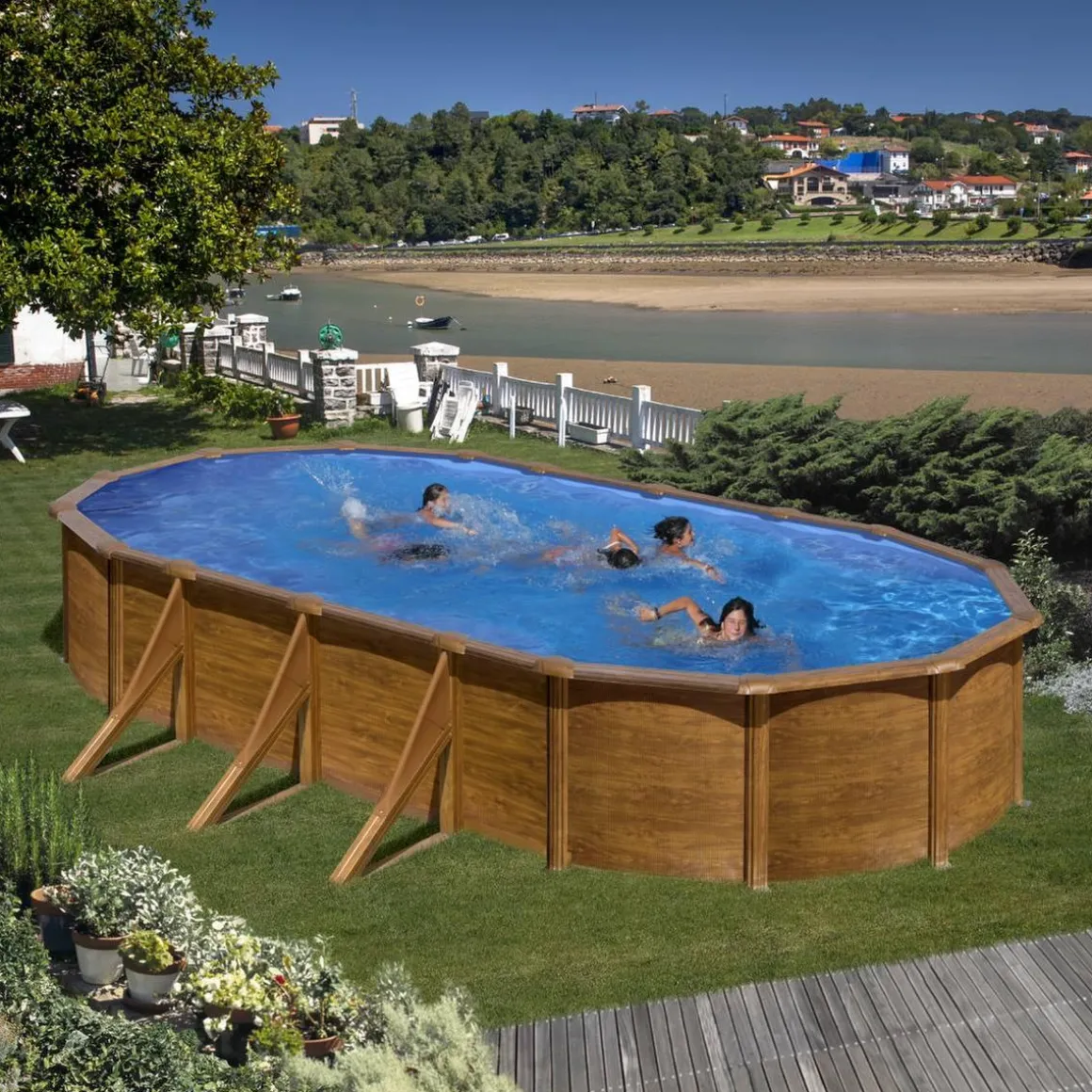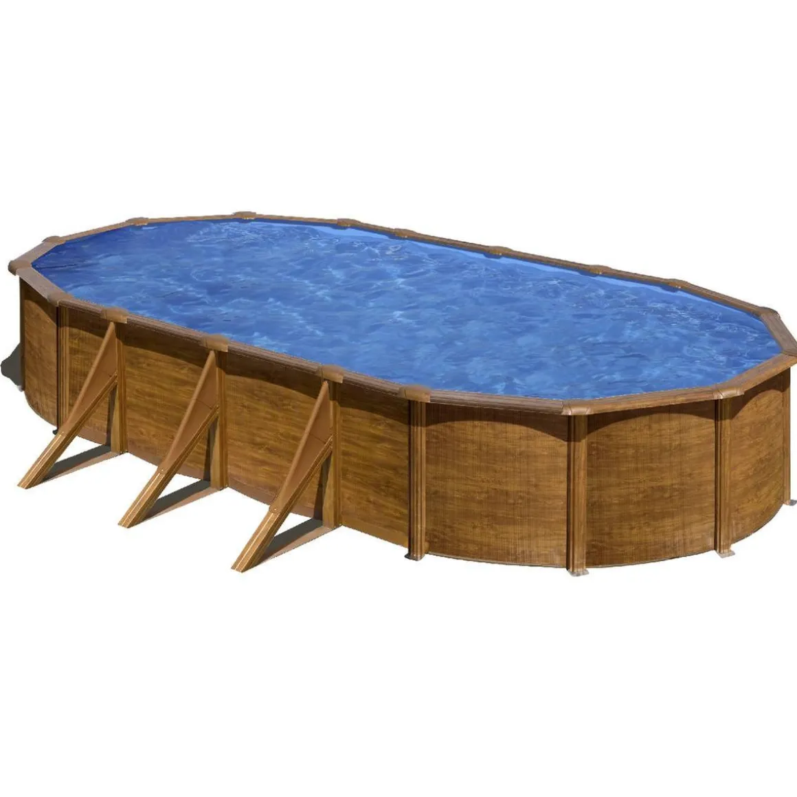 Piscina ovalada Pacific 7,30 x 3,75 m, piscina ovalada de acero imitación madera de 1,20 m de altura.