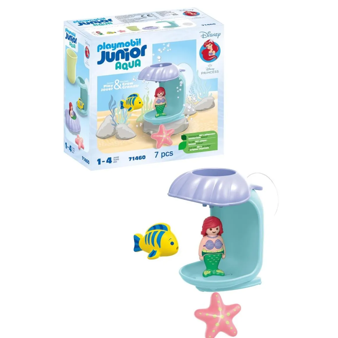 La Playmobil Junior & Disney Ducha de Conchas está fabricada con más del 90% de plásticos de origen vegetal, obtenidos de materiales sobrantes de la producción de alimentos o papel. Los envases utilizan al menos un 90% de cartón reciclado y un 100% de papel reciclado, evitando el uso de plástico siempre que sea posible. Esta política de sostenibilidad garantiza que el producto no solo sea seguro para los niños, sino también respetuoso con el medio ambiente.
