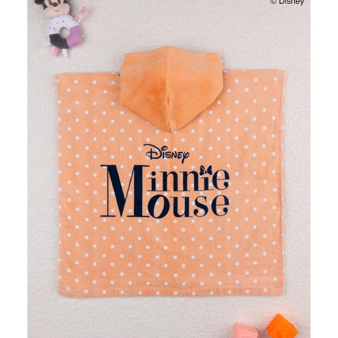 Colorido poncho de playa para niña con capucha, ideal para secarse rápidamente después del baño. De color naranja vibrante, cuenta con un divertido estampado de Minnie. Su diseño práctico facilita la colocación y proporciona una cobertura suave y absorbente. Perfecto para días de playa o piscina.