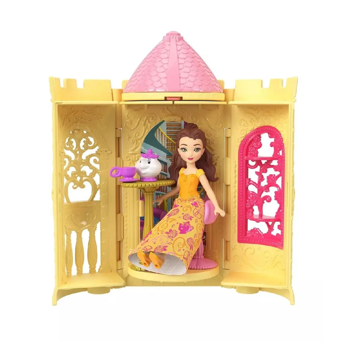- Muñeca sorpresa: Abre la torre para revelar una muñeca articulada inspirada en princesas disney.