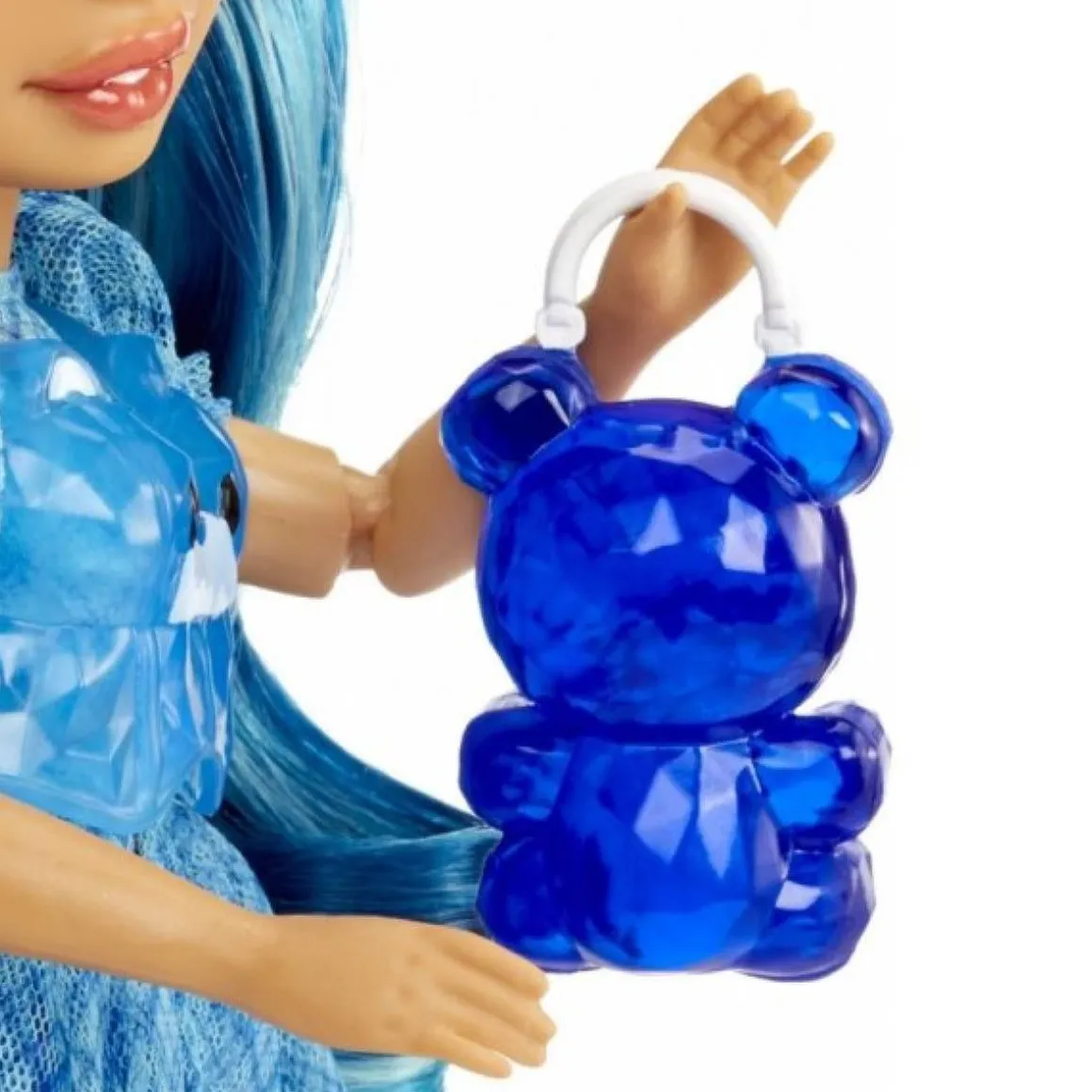 Skyler destaca por su indumentaria multicolor y su largo cabello azul lleno de brillo, que invita a los niños a explorar su creatividad. Los pequeños podrán personalizar los accesorios de su muñeca, creando piezas únicas como gafas de sol, bolsos o diademas gracias al kit incluido que facilita esta actividad.