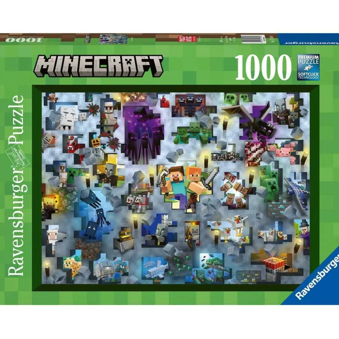 El Ravensburger Minecraft Mobs 1000 Piece Jigsaw Puzzle es una magnífica opción para los amantes del famoso videojuego Minecraft y los puzzles en general. Este rompecabezas te permitirá sumergirte en el emocionante mundo de la construcción y la aventura mientras armas una hermosa imagen de tus personajes favoritos.