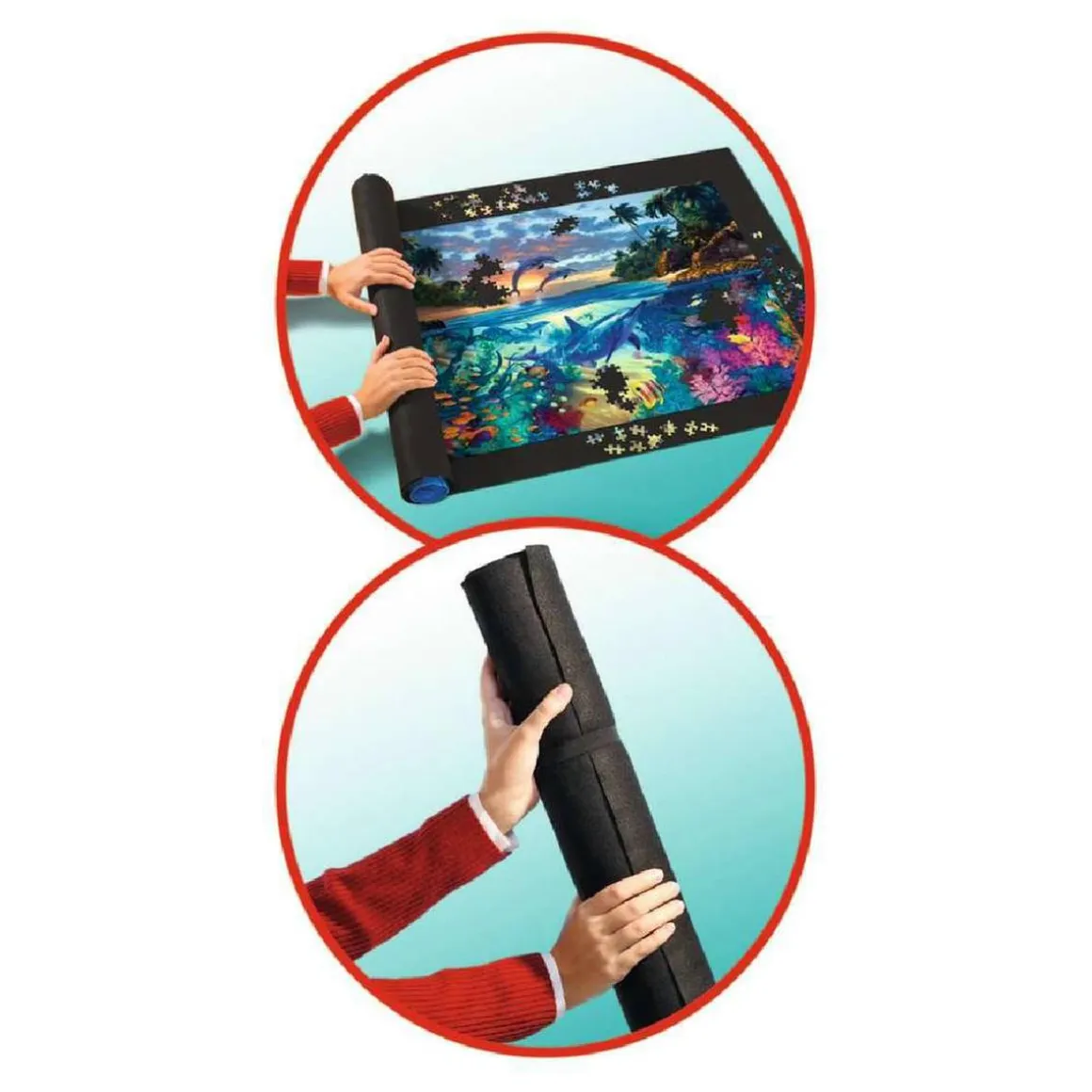 Ravensburger – Roll your puzzle, un tapiz sobre el que hacer los puzzles con un rodillo especial que permite enrollarlo y guardarlo en el mínimo espacio posible.