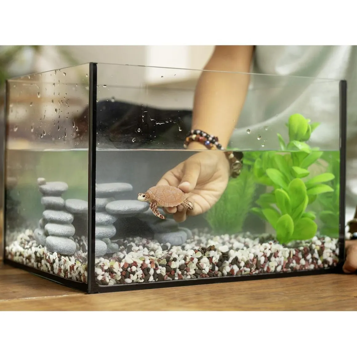 La caja contiene una (1x) tortuga marina, que está lista para unirse a la colección de tus hijos y convertirse en la protagonista de sus historias oceánicas.