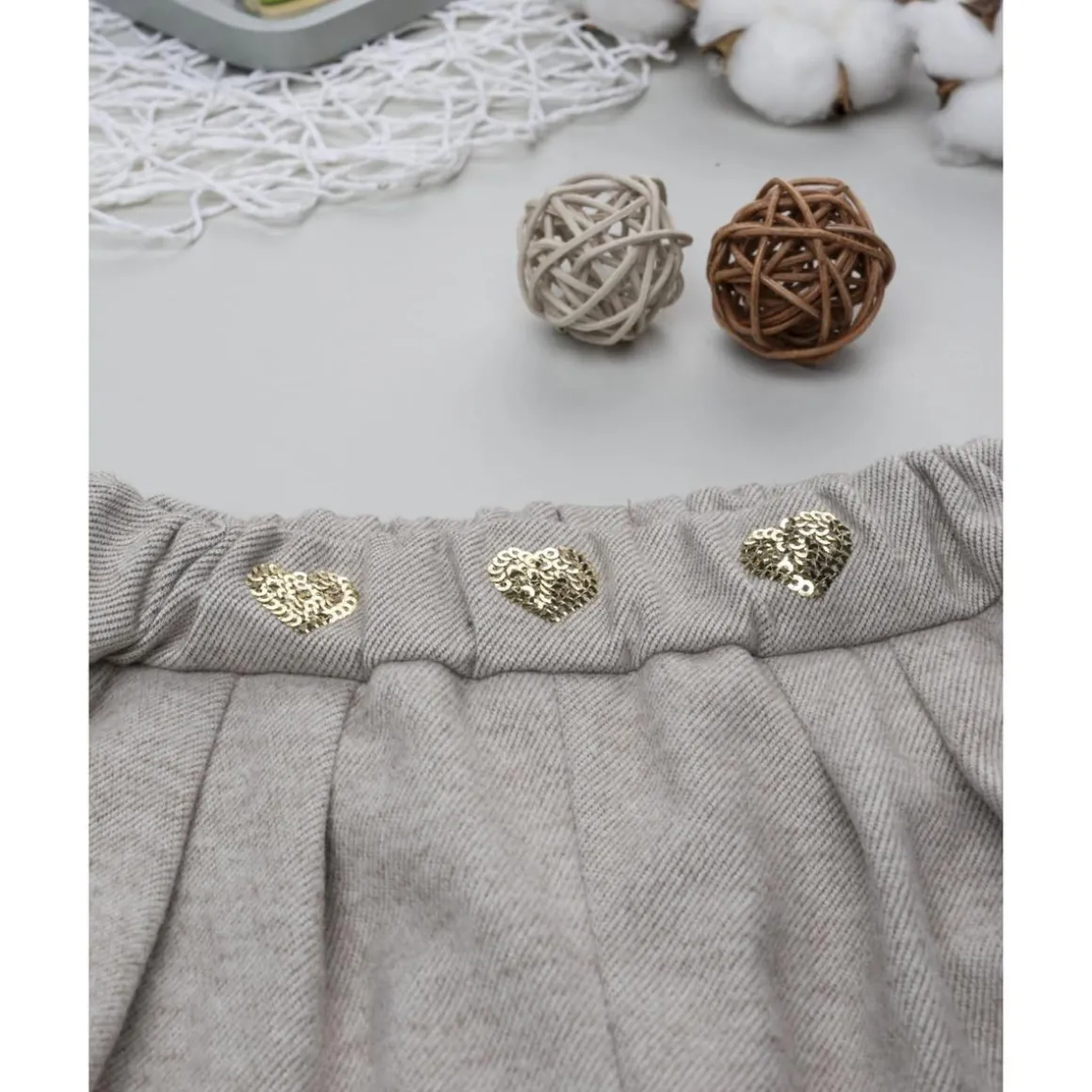 Shorts de niña beige con corazones de strass