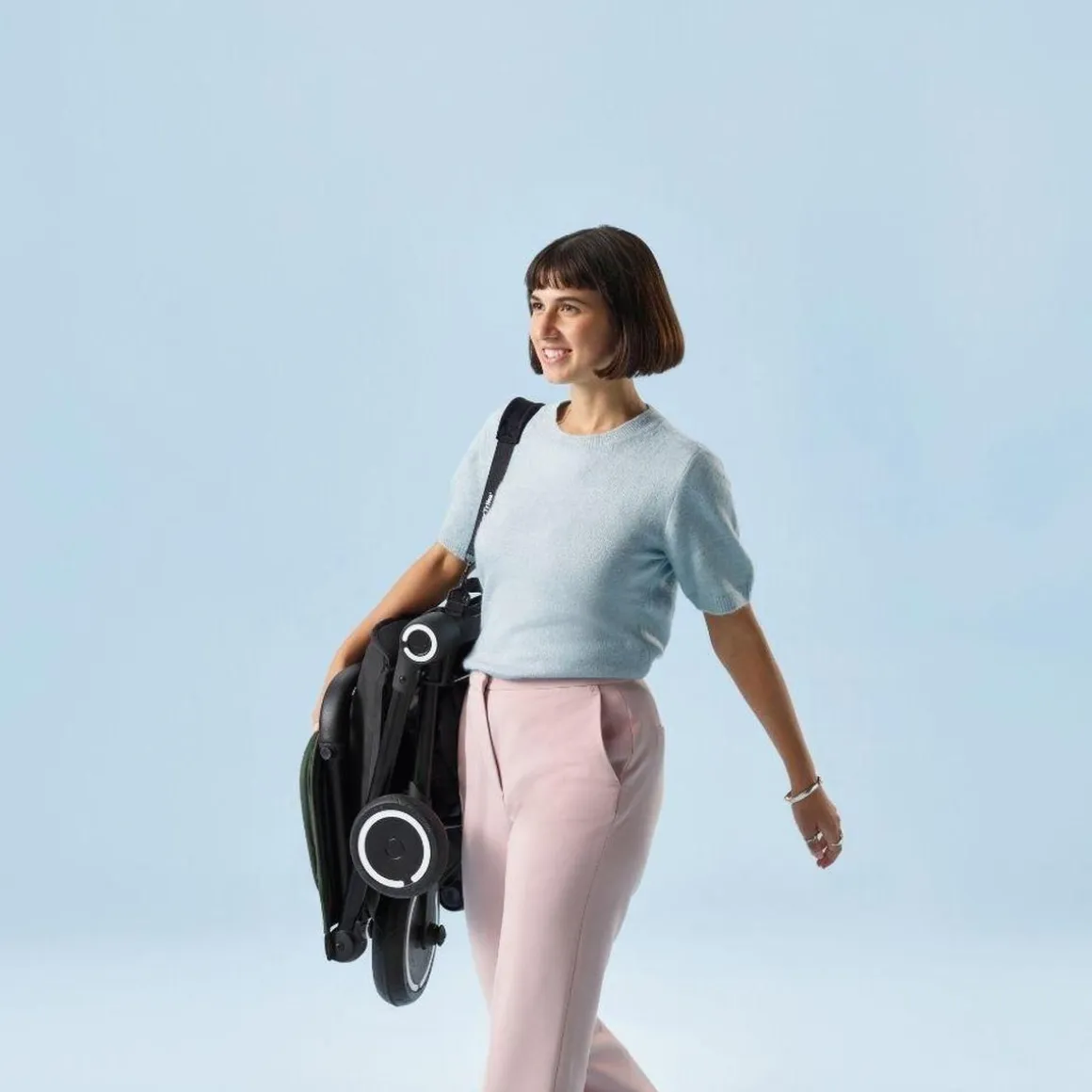 La seguridad es una prioridad: cuenta con arnés de 5 puntos con cierre imantado, barra protectora integrada y rueda delantera de gran tamaño con giro 360º y amortiguación, pensada para adaptarse a todo tipo de terrenos. Además, la capota solar UPF 50 ajustable en cuatro niveles protege al niño del sol, y el plegado compacto y ligero (aprox. 6,9 kg) facilita su transporte y almacenamiento.