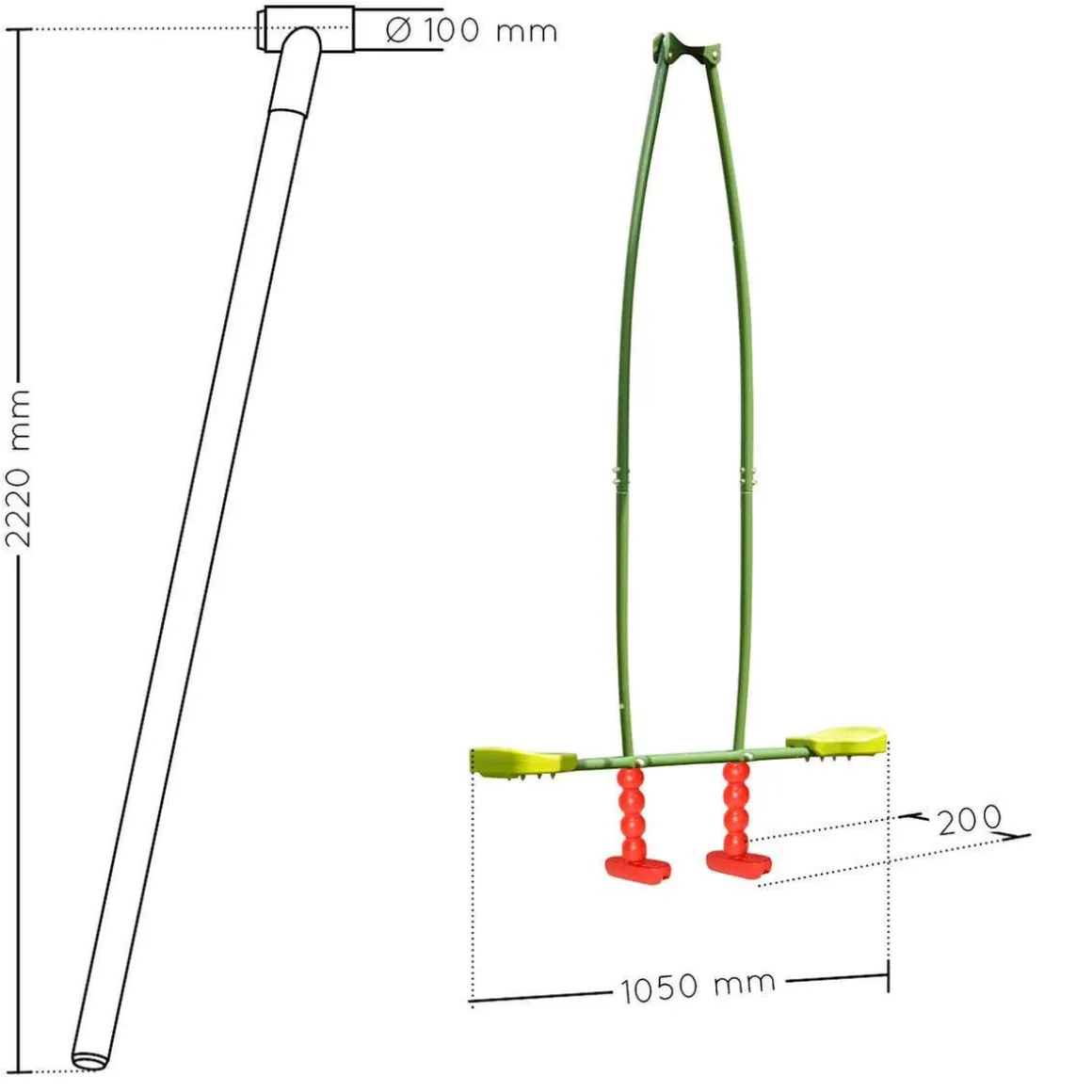 Un balancín de acero galvanizado con dos asientos de plástico que se integrará perfectamente en el exterior y permitirá que los niños de 3 a 12 años se balanceen a su antojo.