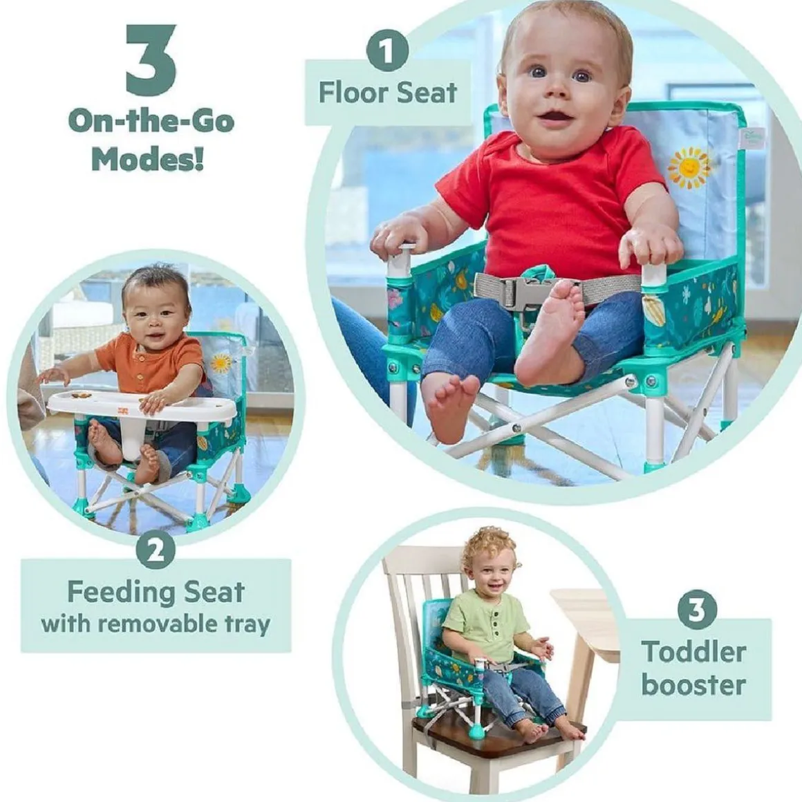 Este asiento multifuncional 3 en 1 puede usarse como asiento de suelo para bebés, silla de comer con bandeja extraíble o elevador para la mesa. Se fija fácilmente a una silla de adulto mediante los cinturones de seguridad incluidos, y el arnés de 3 puntos garantiza mayor seguridad. Después de usarlo, se pliega de forma compacta y se guarda en la bolsa de transporte.