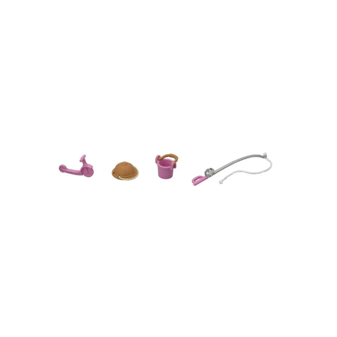 El set incluye vehículo y más de 15 accesorios como bicicleta, caña de pescar, patinete, prismáticos o accesorios de cocina.