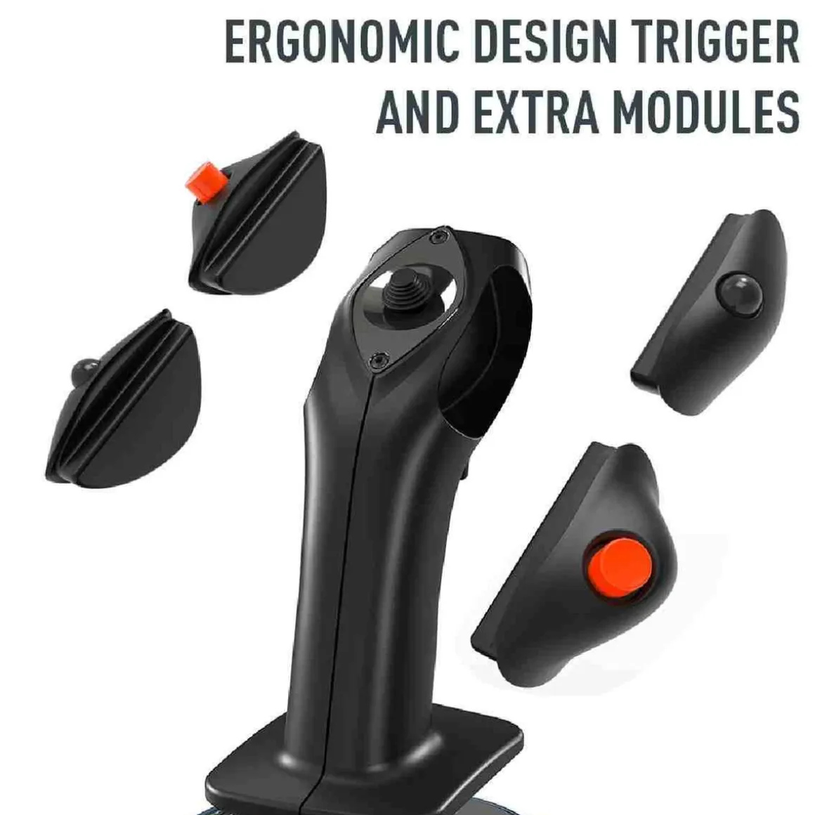 - 4 módulos de botones de cabezal de joystick intercambiables y 14 botones reasignables para una multitud de posibilidades en vuelo y en tierra