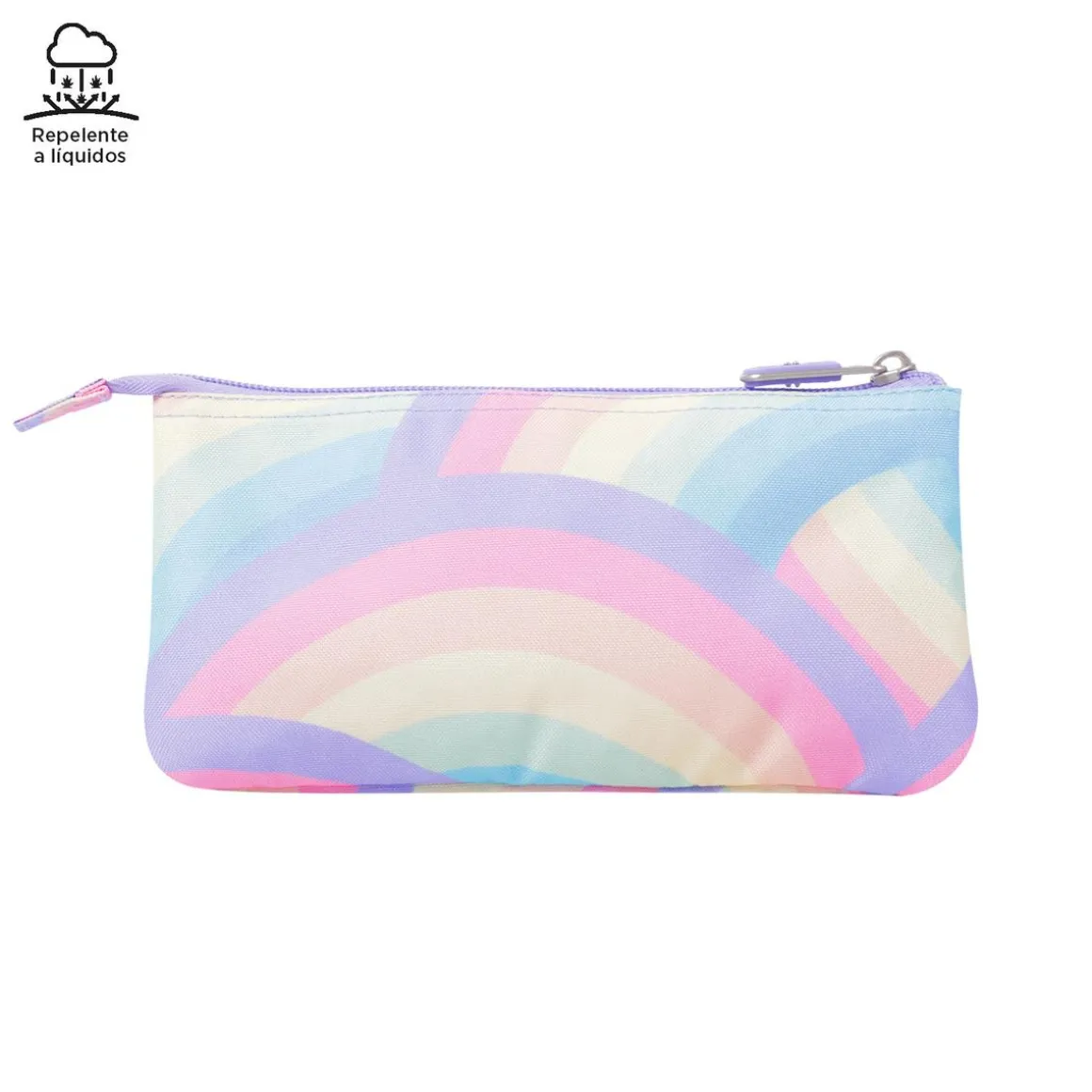 Totto – Estuche escolar arcoíris Tablero, un estuche escolar de tres compartimentos con cremallera.