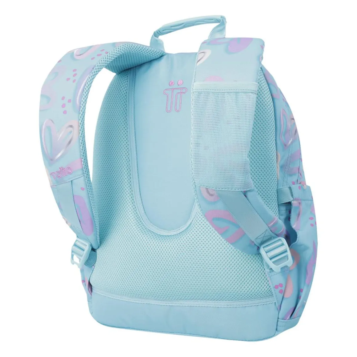 Totto – Mochila escolar corazones pintados Gommas, una mochila fabricada con materiales muy resistentes de la colección Ecole.