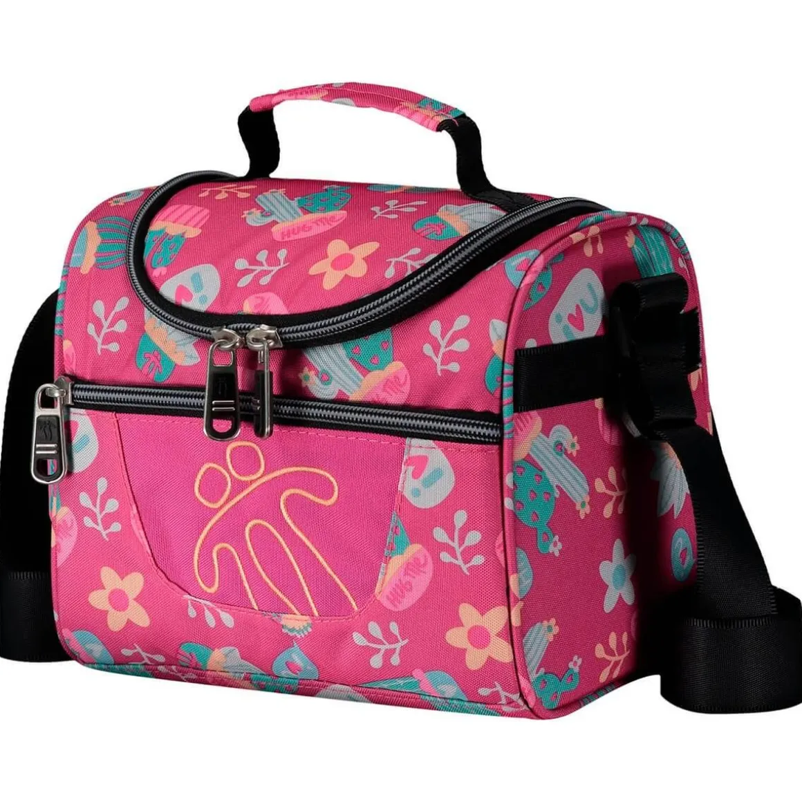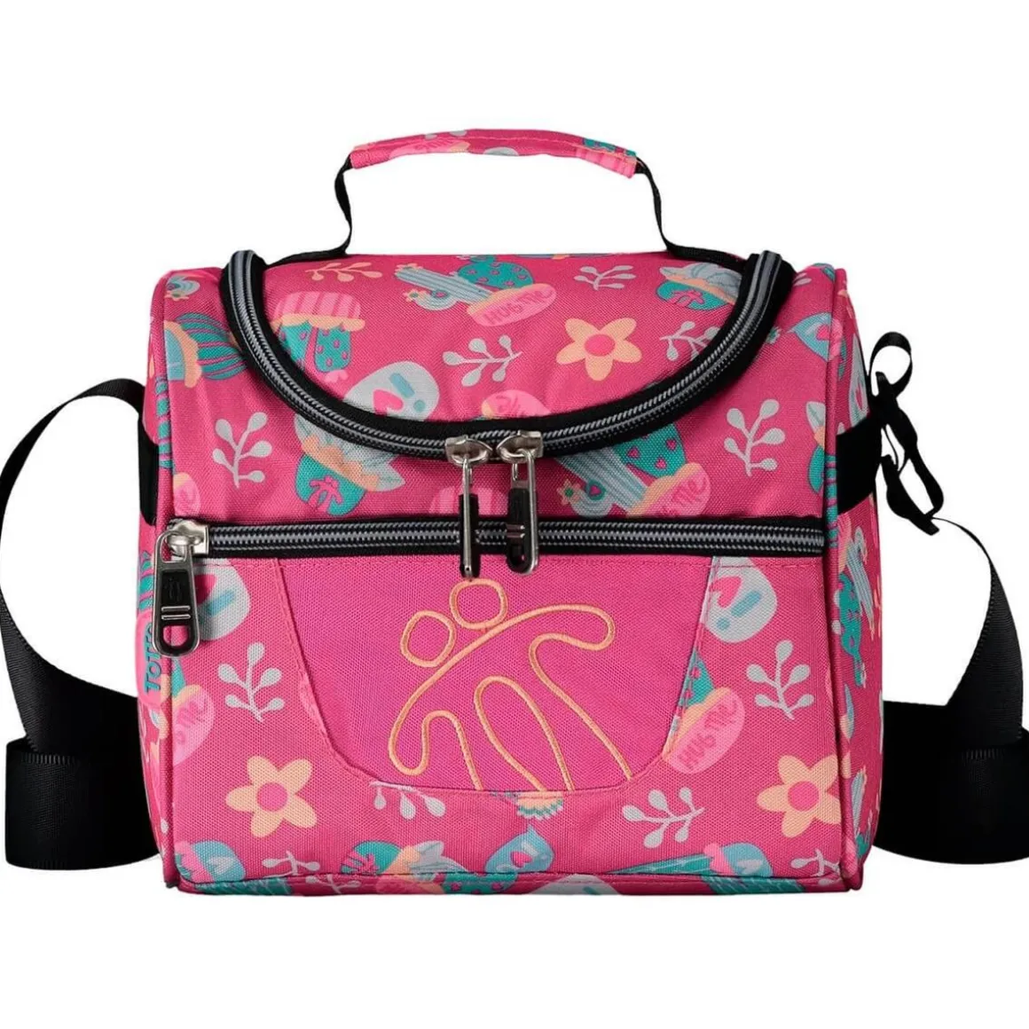 Tiene un compartimento interior con un material especial para llevar los tuppers, la meriendas, servilletas, cubiertos y más.