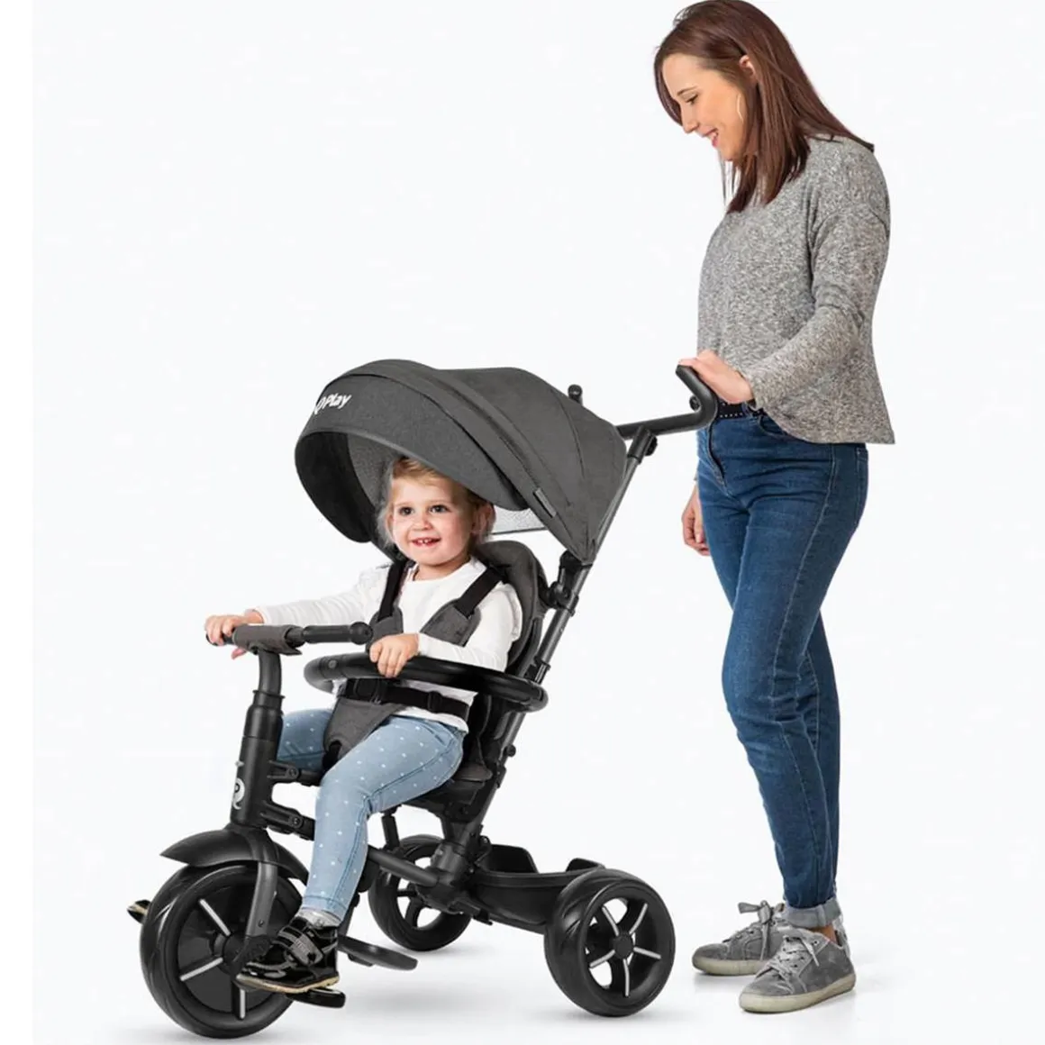 Triciclo New Rito Star gris, un triciclo evolutivo que se adapta al crecimiento del bebé.