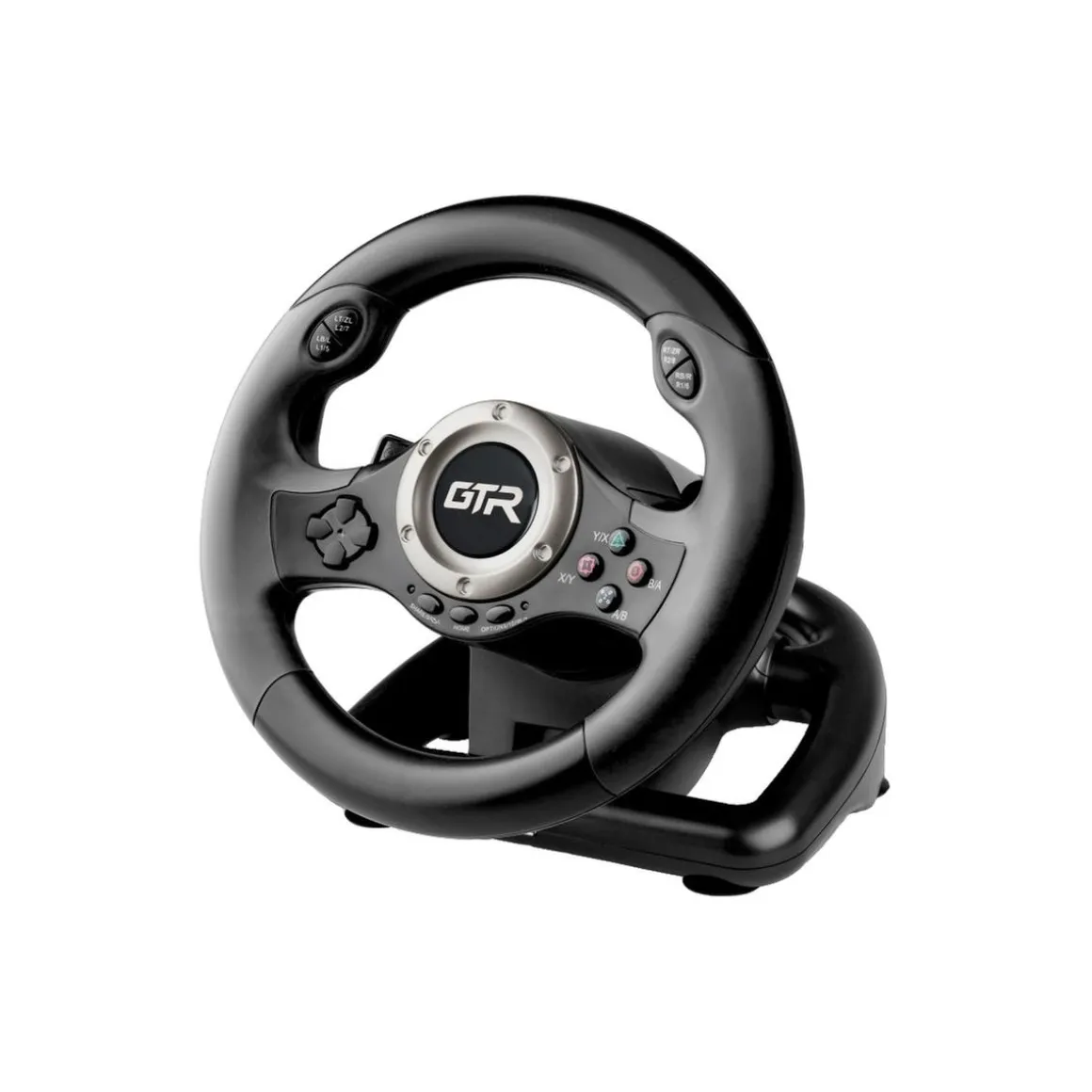Volante Jinshu GTR para videoconsolas Multiplataforma. Este volante tiene 180º giro de volante y tiene un tamaño de 23 cm para un mayor realismo, además de un acabado premium en goma, con textura para un mejor agarre en la conducción.