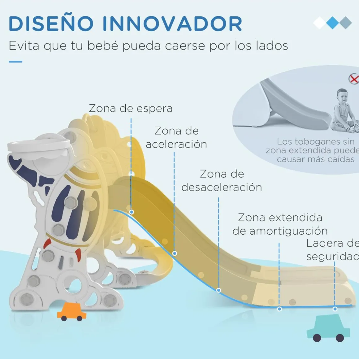 - 3 en 1, compuesto por tobogán, columpio y canasta de baloncesto