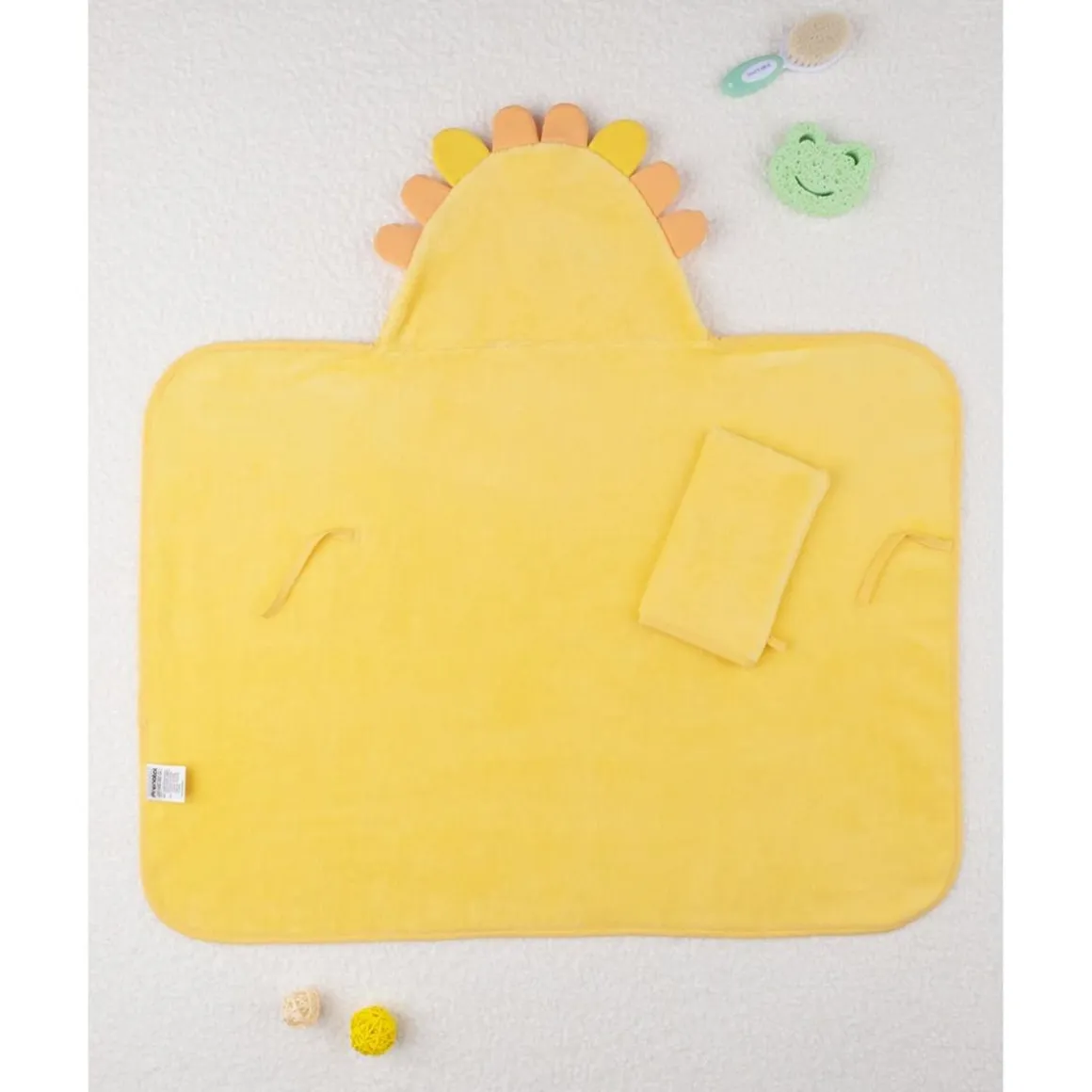 Este simpático albornoz para niño es ideal para mantener a tu pequeño cómodo y abrigado. Con un diseño divertido en amarillo ocra, destaca su capucha con el estilizado rostro de un león en tonos marrones coordinados. El albornoz es suave, envolvente y práctico, ya que se puede cerrar fácilmente para mantener a tu bebé aún más abrigado. Es perfecto para el baño o para mantener a tu niño acogido después de un día de juegos.