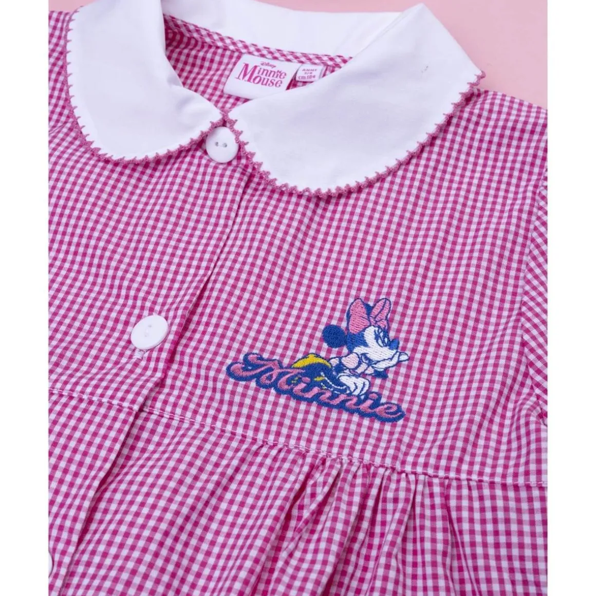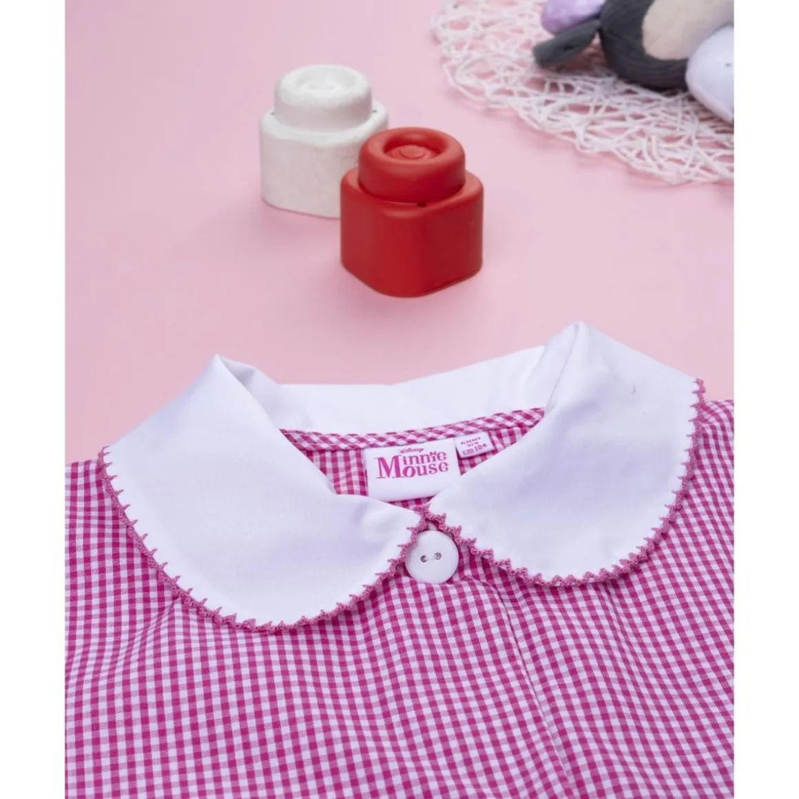 Esta bata escolar de niña en color rosa combina practicidad y estilo. Incluye cuello blanco, puños elásticos y cierre frontal con botones. El bordado de Minnie en el pecho aporta un toque tierno y alegre. Con corte a la cintura y bolsillos delanteros, es cómoda y funcional para el día a día escolar.