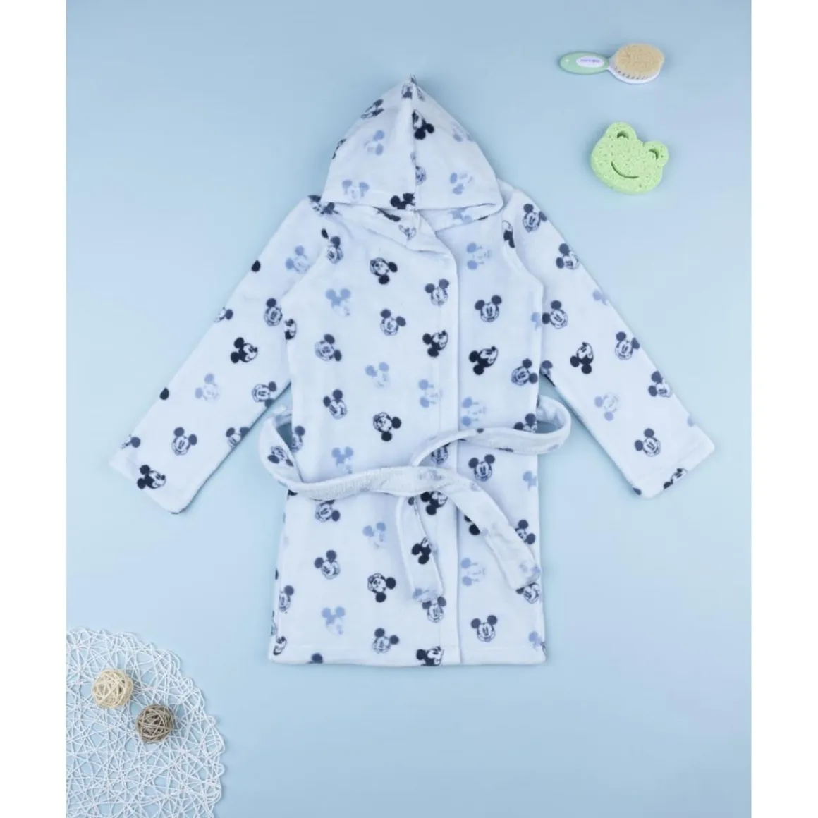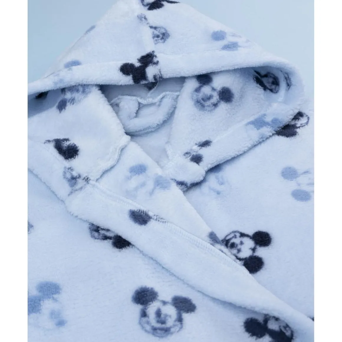 El batín con capucha Mickey Mouse está pensado para los pequeños fans del personaje más querido de Disney. De tejido aterciopelado en azul claro con estampado allover de Mickey, es cálido, suave y muy cómodo. Incluye cinturón a la cintura para un ajuste seguro.