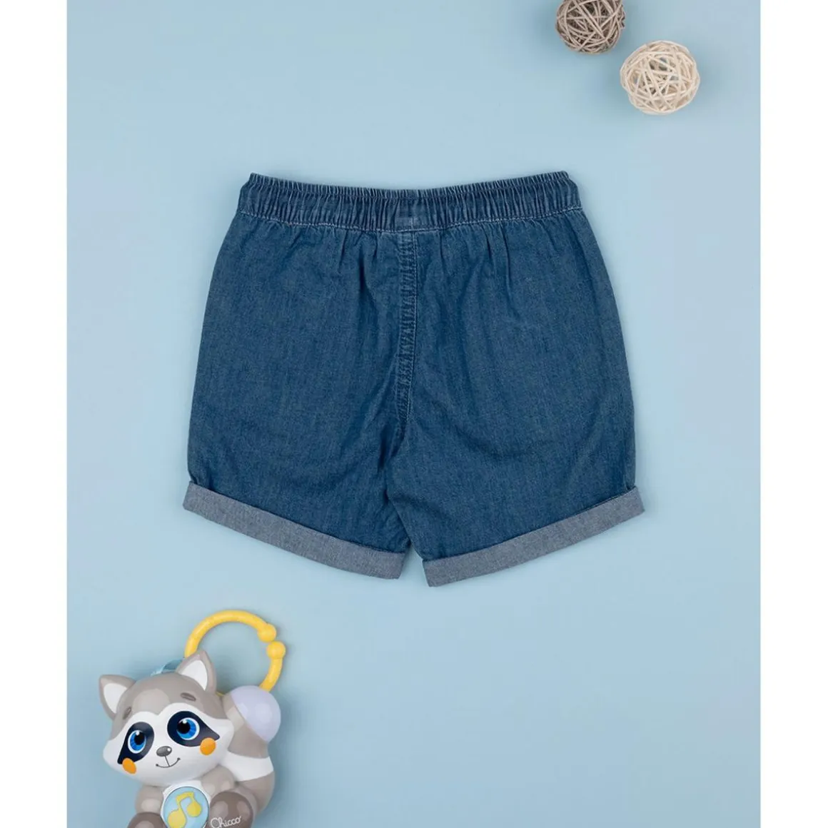 Bermuda casual de niño en chambray. La prenda se presenta con un dobladillo y se desarrolla en un denim azul total. El ajuste es holgado y ajustable gracias a un cordón en la cintura con un coordinado a juego. Los bermudas para niño son adecuados para ocasiones casuales/deportivas. La prenda es de algodón oeko-tex, probada para sustancias nocivas, garantiza alta seguridad. Accesorios no a la venta. El paquete contiene solo la prenda de vestir.