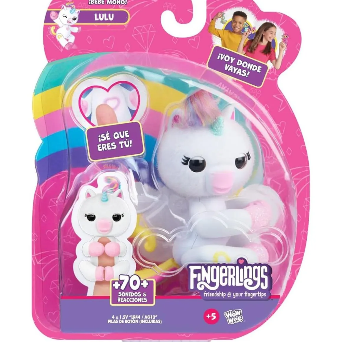 Con el Fingerlings Unicornio, el cariño es mutuo. Su corazón se ilumina cuando lo pones en tu dedo, reconociendo que eres tú su especial amigo. Juntos podrán disfrutar de la magia de una amistad que resplandece, compartiendo juegos y descubriendo más de 70 sonidos y reacciones que harán cada día diferente y emocionante.