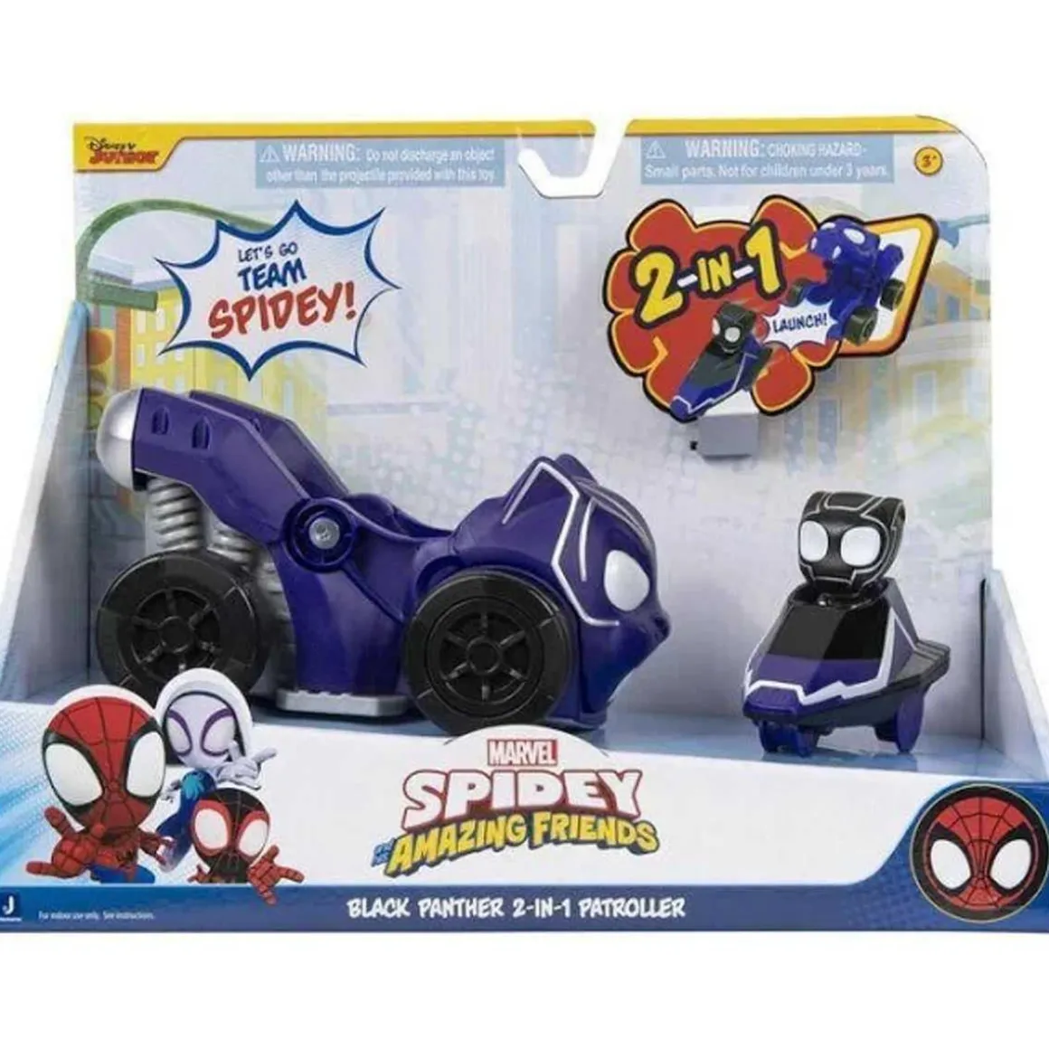 Inspirado en la serie «Spidey and His Amazing Friends», este vehículo de Black Panther permite a los niños recrear las emocionantes aventuras de Spidey, Ghost-Spider, Miles Morales: Spider Man y otros personajes como Ms. Marvel, Black Panther y Hulk. Todos ellos unen sus poderes y habilidades únicas para luchar juntos contra el mal como el increíble Equipo Spider.