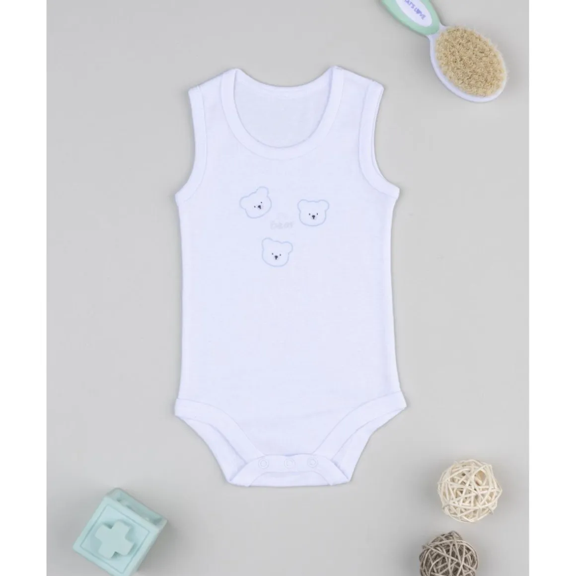 Body básico de canalé para niño, en blanco con pequeña estampación coordinada. Con cierre automático en la entrepierna que facilita el cambio. Algodón Oeko-Tex, testado para evitar sustancias nocivas. Accesorios no incluidos. La caja contiene solo la prenda.