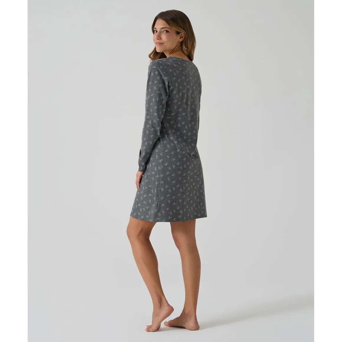 Camisa de noche premamá gris oscuro flores all-over