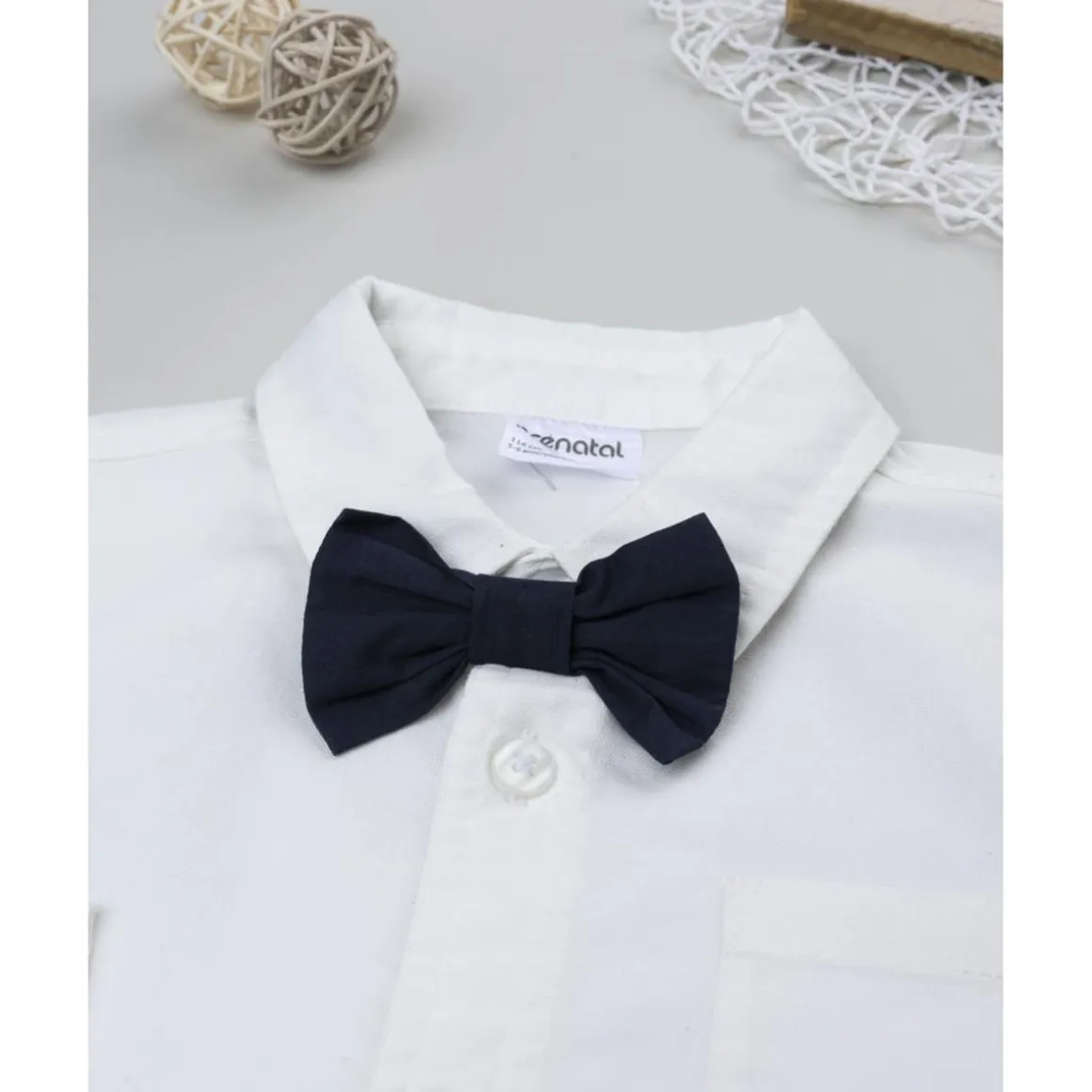 Camisa niño blanca con pajarita azul