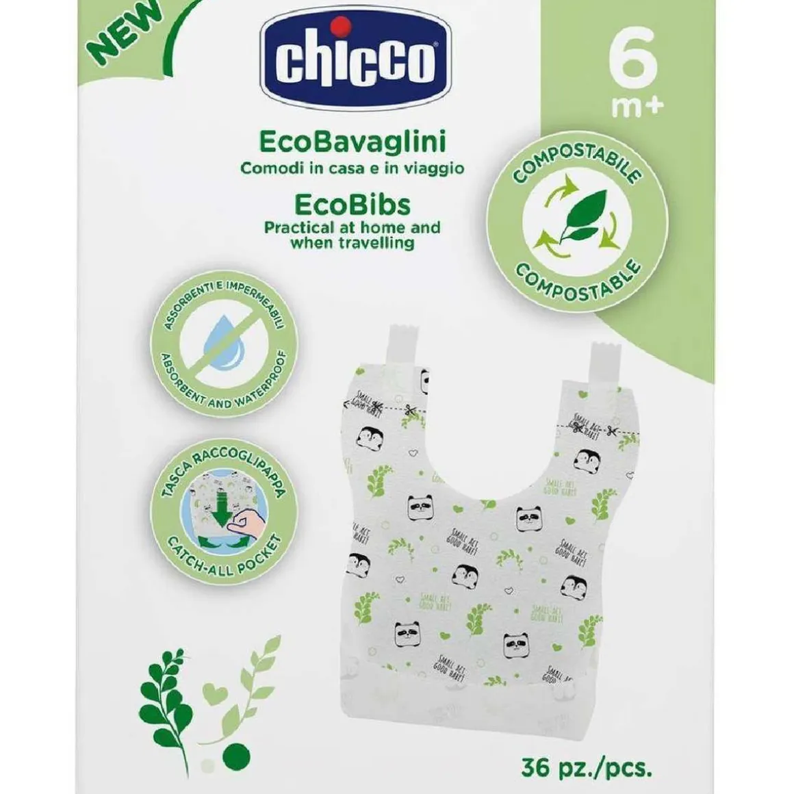 Chicco – 36 Baberos monouso biodegradables, ecológicos, biodegradables, impermeables para un solo uso.