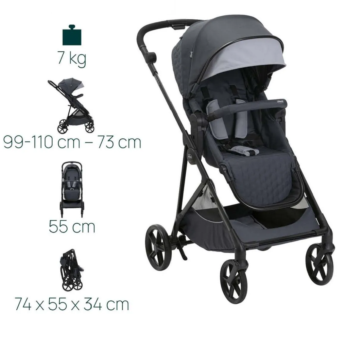 - Silla de paseo ligera: Con solo 7 kg, es fácil de transportar y maniobrar en entornos urbanos.